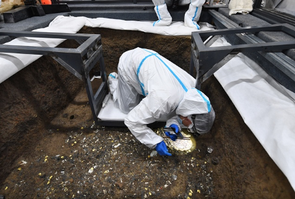 与科学发掘同样重要的就是对出土文物的科学保护,在发掘仓的外面坐落着现场应急保护平台。这里有应急检测分析室、微痕物应急保护室、文保工作室、无机质和有机质文物应急保护室。