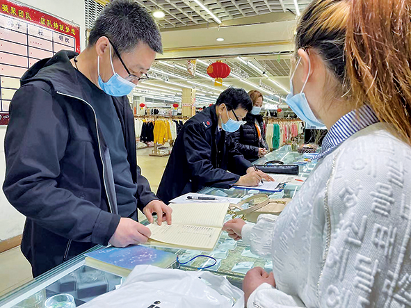 到达商场时,执法人员看到商场收银台工作人员正在给前来结账的顾客发放免费礼品券,顾客可凭礼品券到指定珠宝店柜台免费领取口罩、棉签等小礼品,还可以免费抽奖。