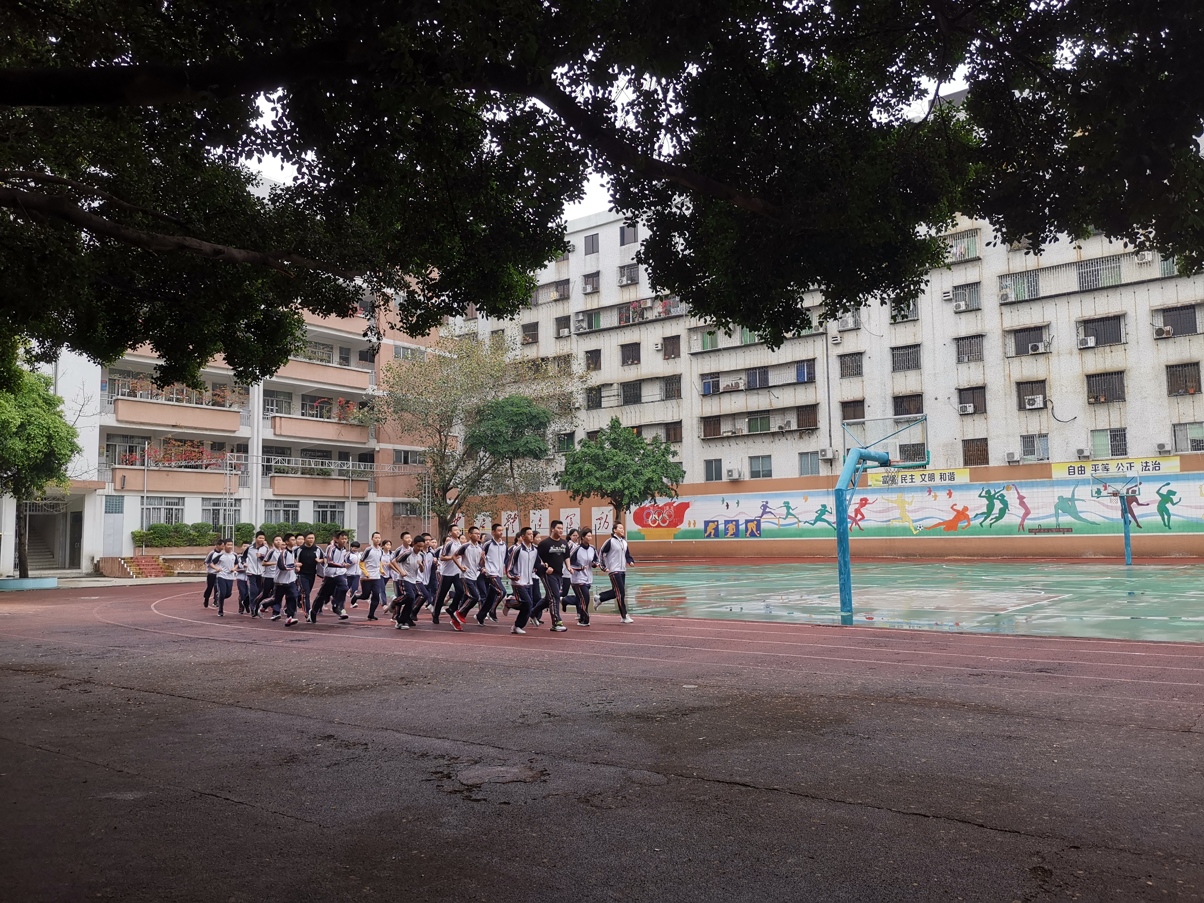 ↑石龙三中学生在课间跑操。新华社记者邓瑞璇摄