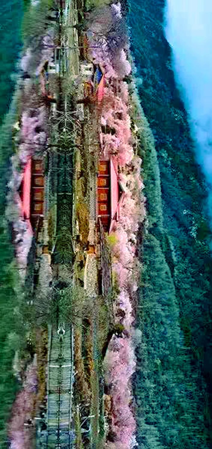 察隅县古玉乡有一片野生桃林,三面环山,灼灼桃花盛放之时,犹如世外桃源。