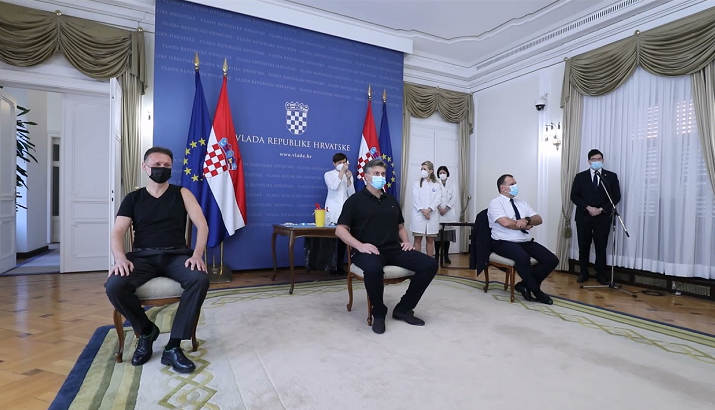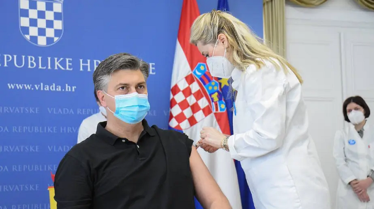 当地时间3月24日,克罗地亚总理普连科维奇、议长扬德罗克维奇、卫生部长贝罗什接种了阿斯利康新冠疫苗。