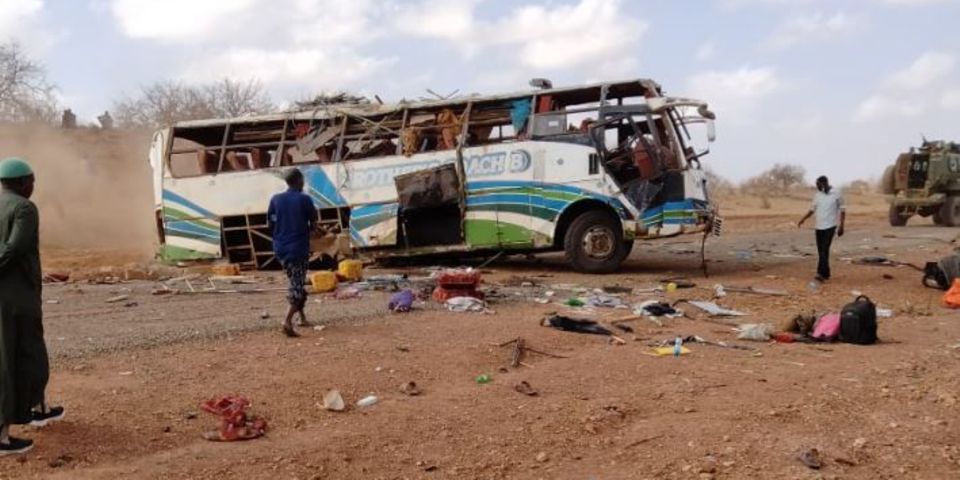 曼德拉郡郡长阿里·罗巴称,这辆大巴车于24日早晨从该郡拉费镇开往曼德拉镇的途中,触发了一个置于路边的简易爆炸装置,造成严重人员伤亡。