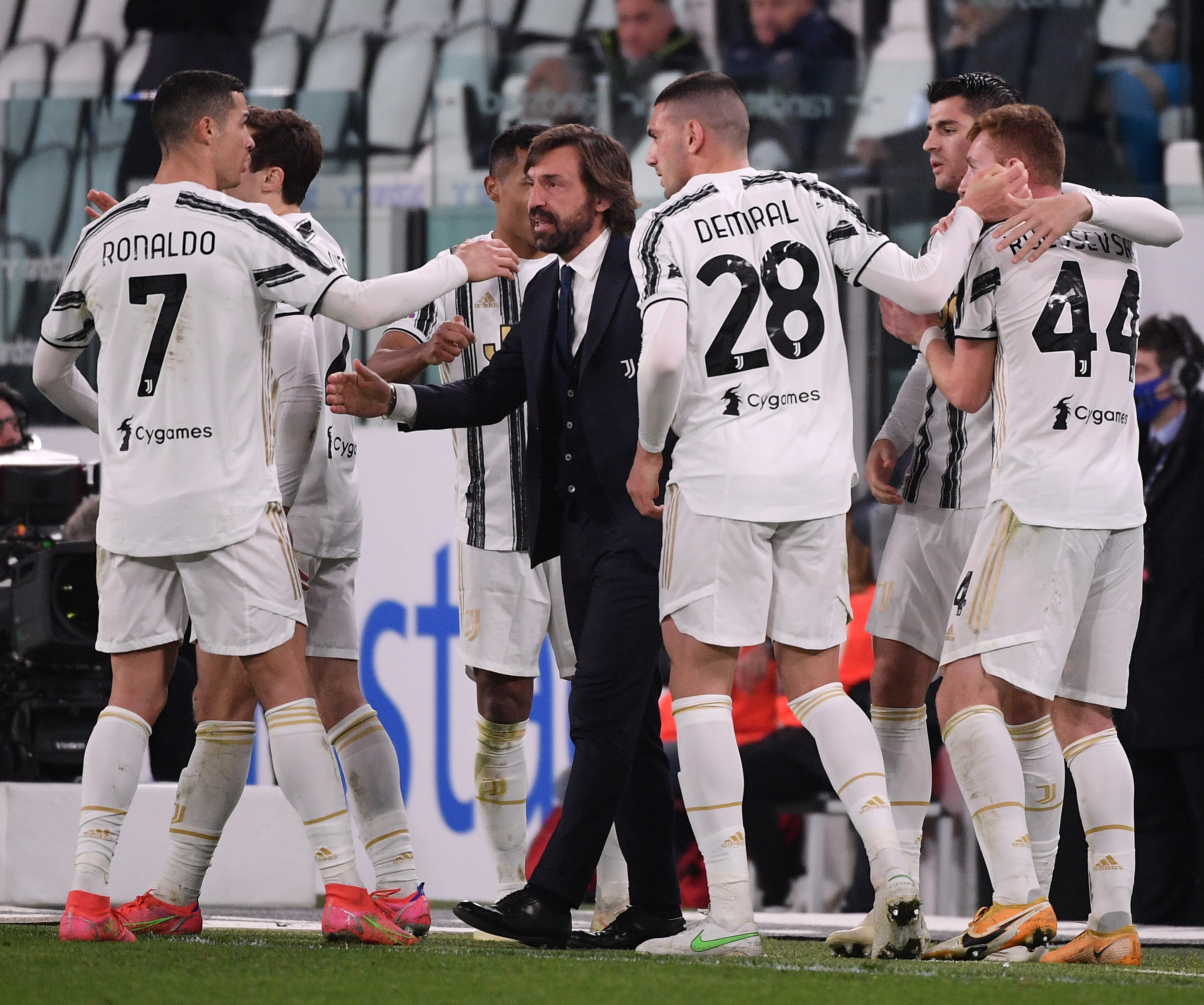 3月2日,尤文图斯队主教练皮尔洛(左四)和球员们。新华社发(费代里科·塔尔迪托摄)