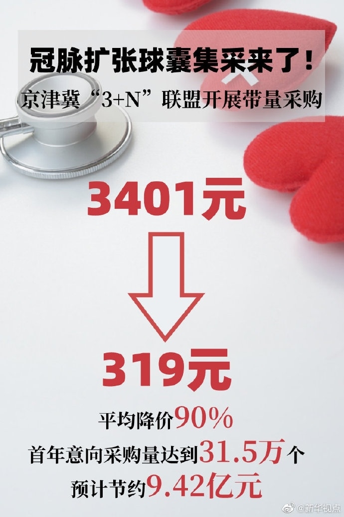 在冠脉支架通过集采价格大幅降低后,同为冠状动脉相关治疗所必需的冠脉扩张球囊的价格仍偏高。为此,京津冀“3+N”联盟“团购”冠脉扩张球囊。本次采购共72个产品中选,价格从均价3401元下降至319元,平均降价90%。首年意向采购量达到31.5万个,预计节约9.42亿元。(记者张建新、彭韵佳、徐鹏航)