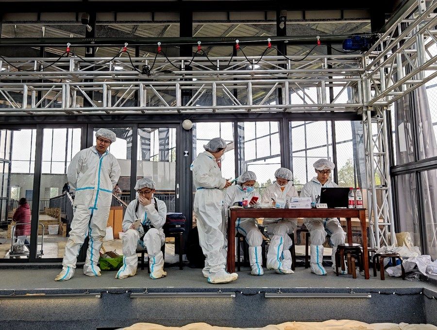 3月10日,北大考古队队员在三星堆遗址8号祭祀坑旁。