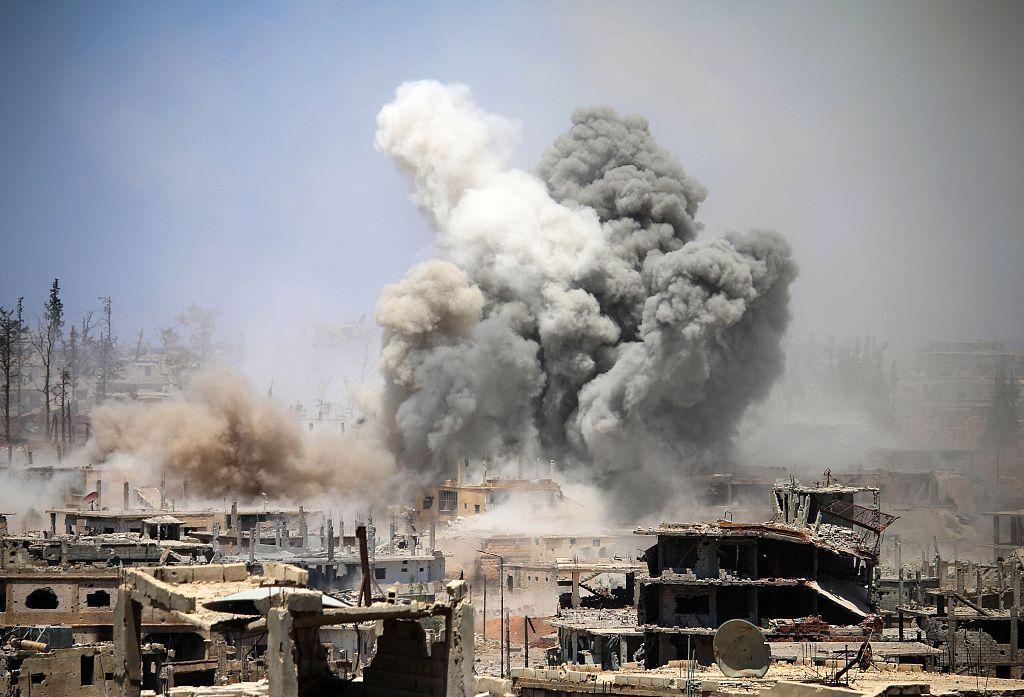 资料图:叙利亚境内被美军空袭后。(图/AP)