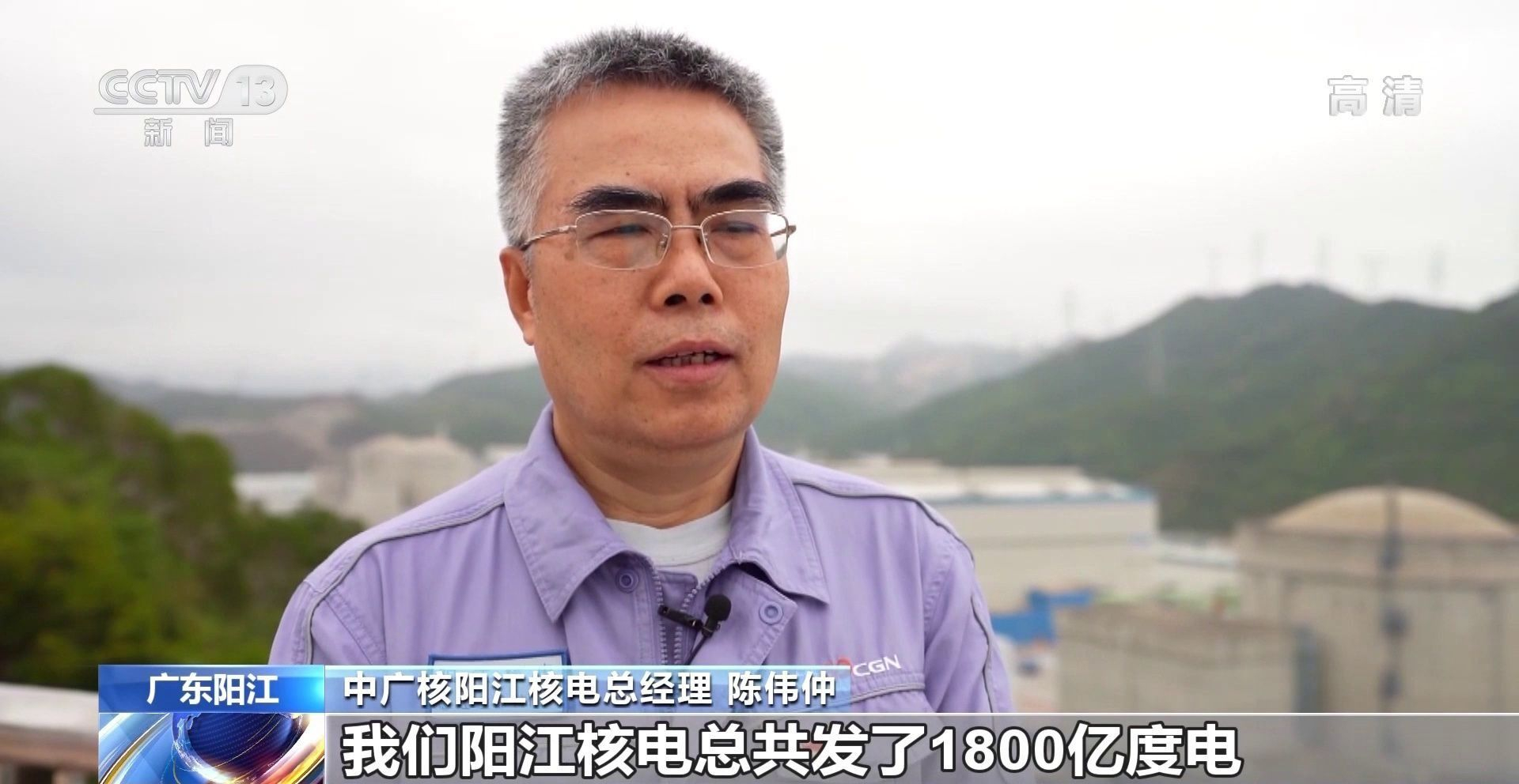 中广核阳江核电总经理 陈伟仲:截至2020年底,我们阳江核电总共发了1800亿度电,相当于减少标煤5500万吨。减少二氧化碳排放1.5亿吨,相当于植树造林40万公顷,助推我国加快实现碳达峰和碳中和目标。