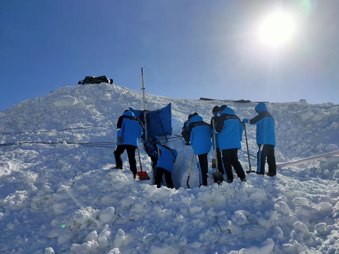 ↑↑↑气象装备保障组在云顶赛区进行探测设备检查维护↑↑↑