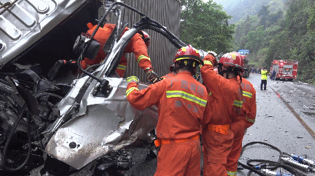 到达现场后,消防救援人员立即对现场警戒,并利用液压工具组对小货车车门进行破拆,扩大救援空间。经过紧张救援,被困人员被救出,经医护人员确认已无生命体征。
