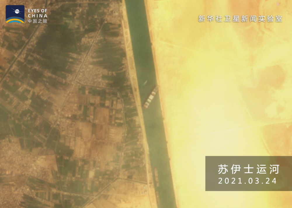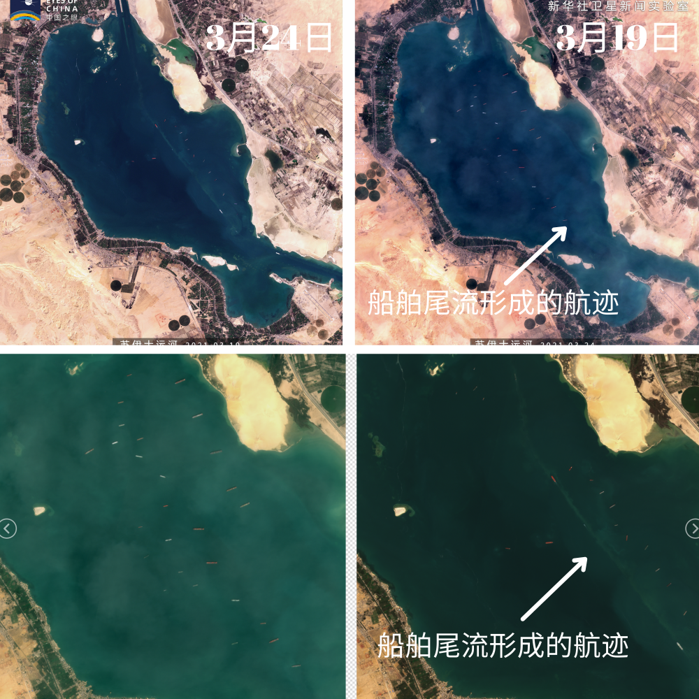 卫星图片显示埃及苏伊士运河“堵船”情况。