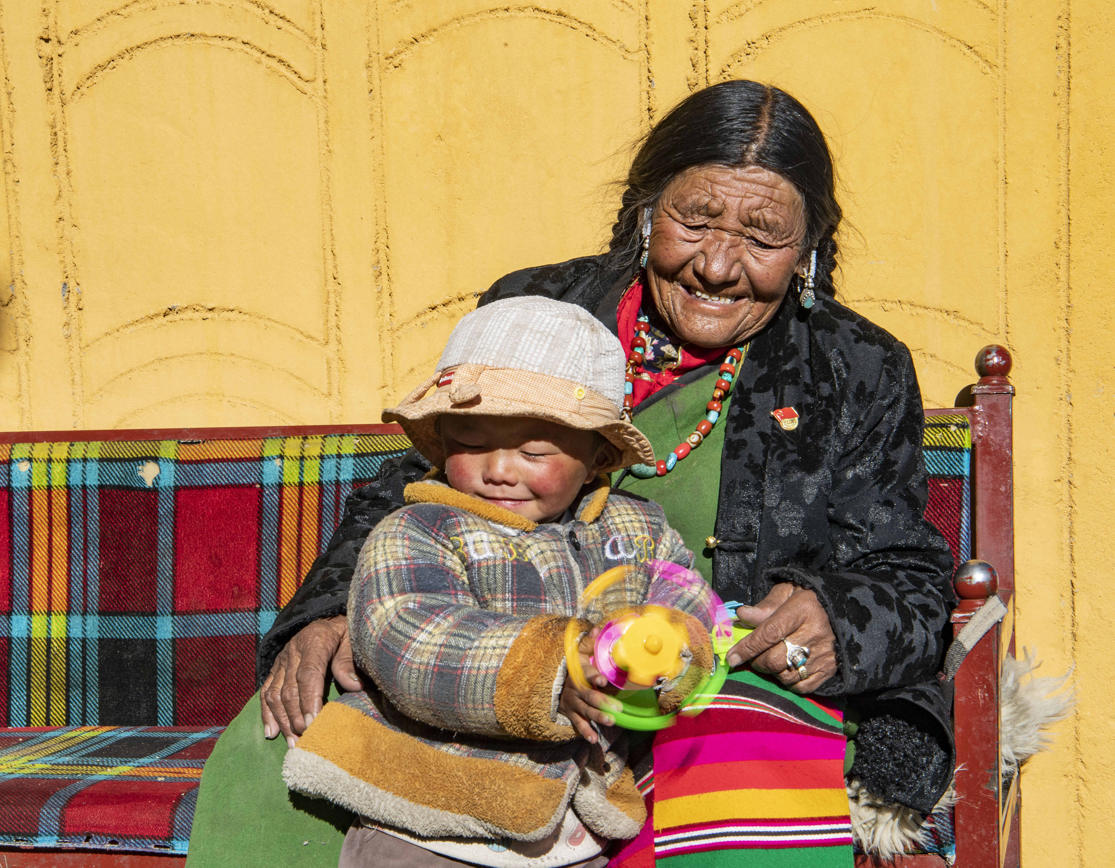 旦增措姆与孙女在晒太阳 新华社记者孙非摄
