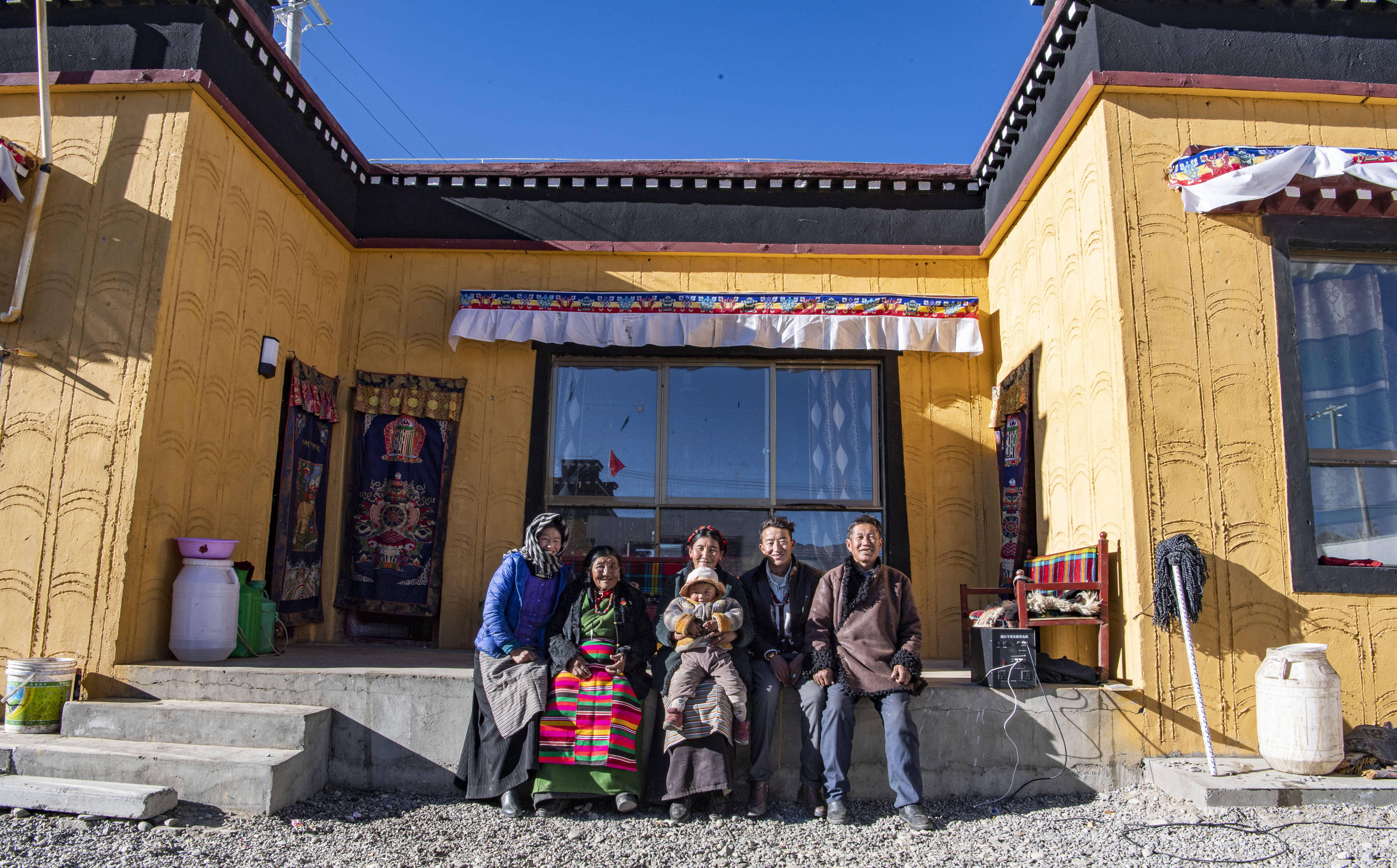 旦增措姆与部分家人在家门前合影 新华社记者孙非摄