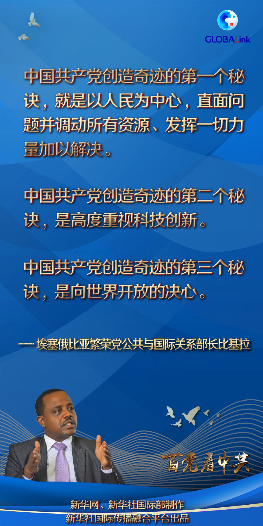 比基拉表示,包括埃塞俄比亚在内的发展中国家可以从中国过去数十年的发展中学到很多东西。他强调,过去几十年,中国共产党领导中国人民创造了真正的奇迹。“我衷心祝贺领导中国人民创造奇迹的中国共产党,祝贺从中受益的中国人民。”
