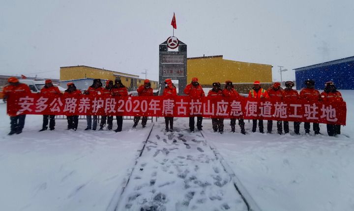 国道109线K3349路段应急便道施工队合影(2020年4月19日摄)。 新华社发(后耀军 摄)