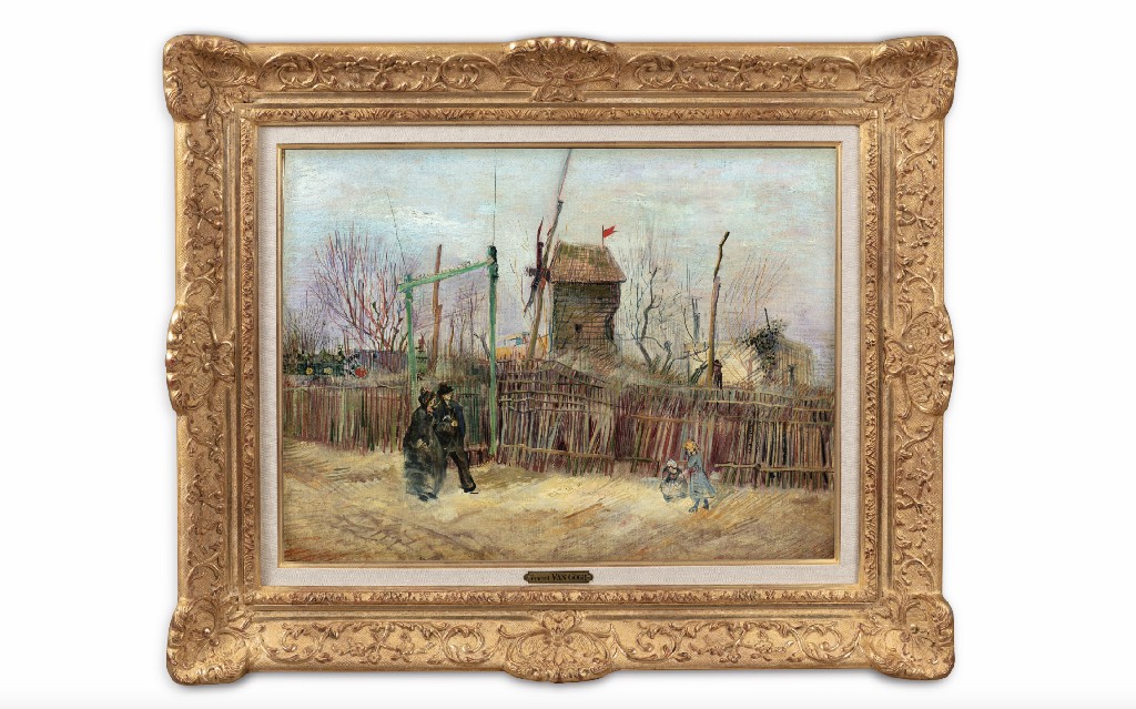这幅名为《蒙马特街景》的作品创作于1887年,表现的重点是当时巴黎北部蒙马特街区一处已作为景观的风车。梵高于1886年3月来到巴黎,与其兄弟提奥同住。之后他接触到不少居住在巴黎的艺术家,并逐步受到当时艺术先锋派的影响。在创作《蒙马特街景》时,梵高就一改其早期作品中的暗色调,转而采用更为鲜活和丰富的色彩结构。