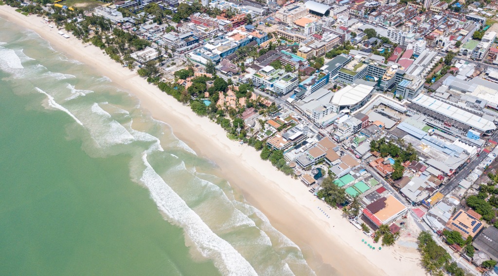 2020年9月13日拍摄的泰国普吉岛巴东海滩(无人机照片)。(新华社记者张可任摄)