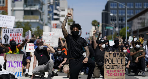 2020年3月21日,美国加州,民众举行大规模游行抗议警察暴力和种族歧视。(图片来源:法新社)