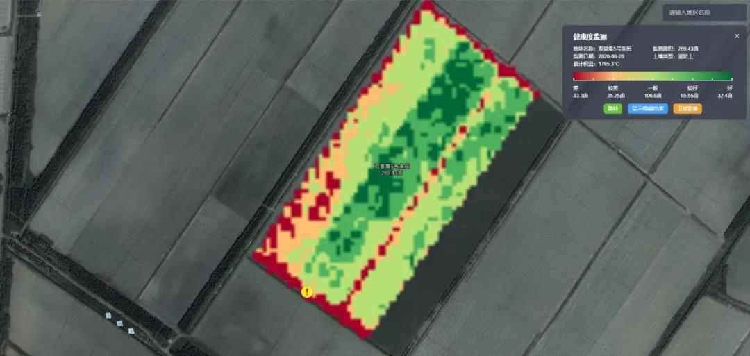 上图为2020年6月20日八师石总场现场图;下图为2020年6月20日遥感监测的结果,棉农足不出户便可悉知田间事。来源:疆天棉图