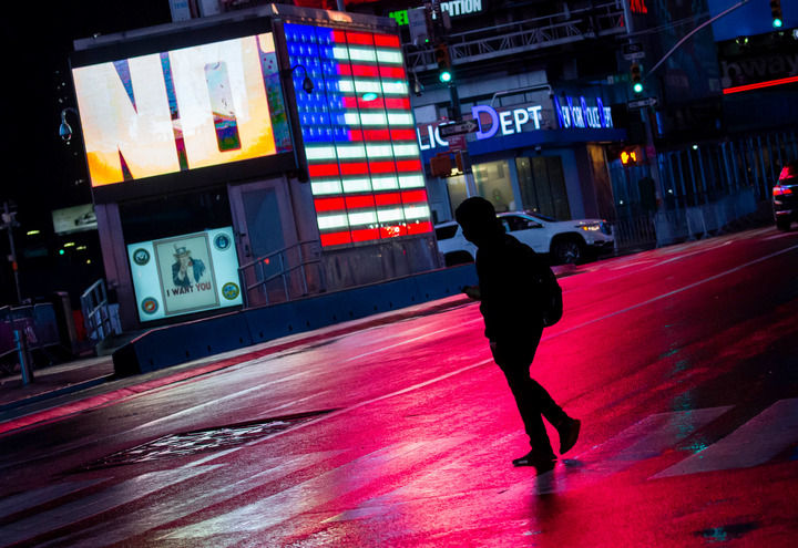 3月24日,行人在美国纽约时报广场过马路。新华社发(郭克摄)
