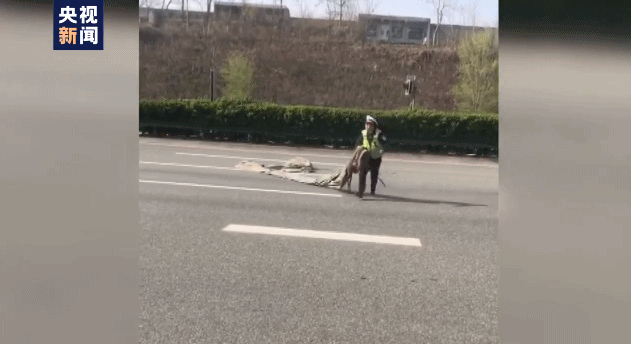 为迅速排除险情,辅警叶森在确保自身安全的情况下瞄准时机,快速冲向路面,将篷布捡起,妥善排除了一起路面隐患。