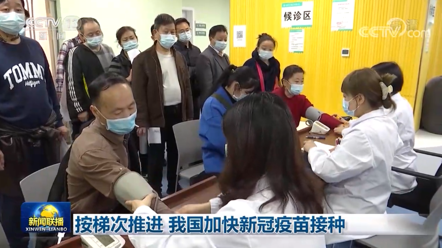央视网消息(新闻联播):我国目前正按梯次推进,加快新冠疫苗接种进度,提高人群接种率。