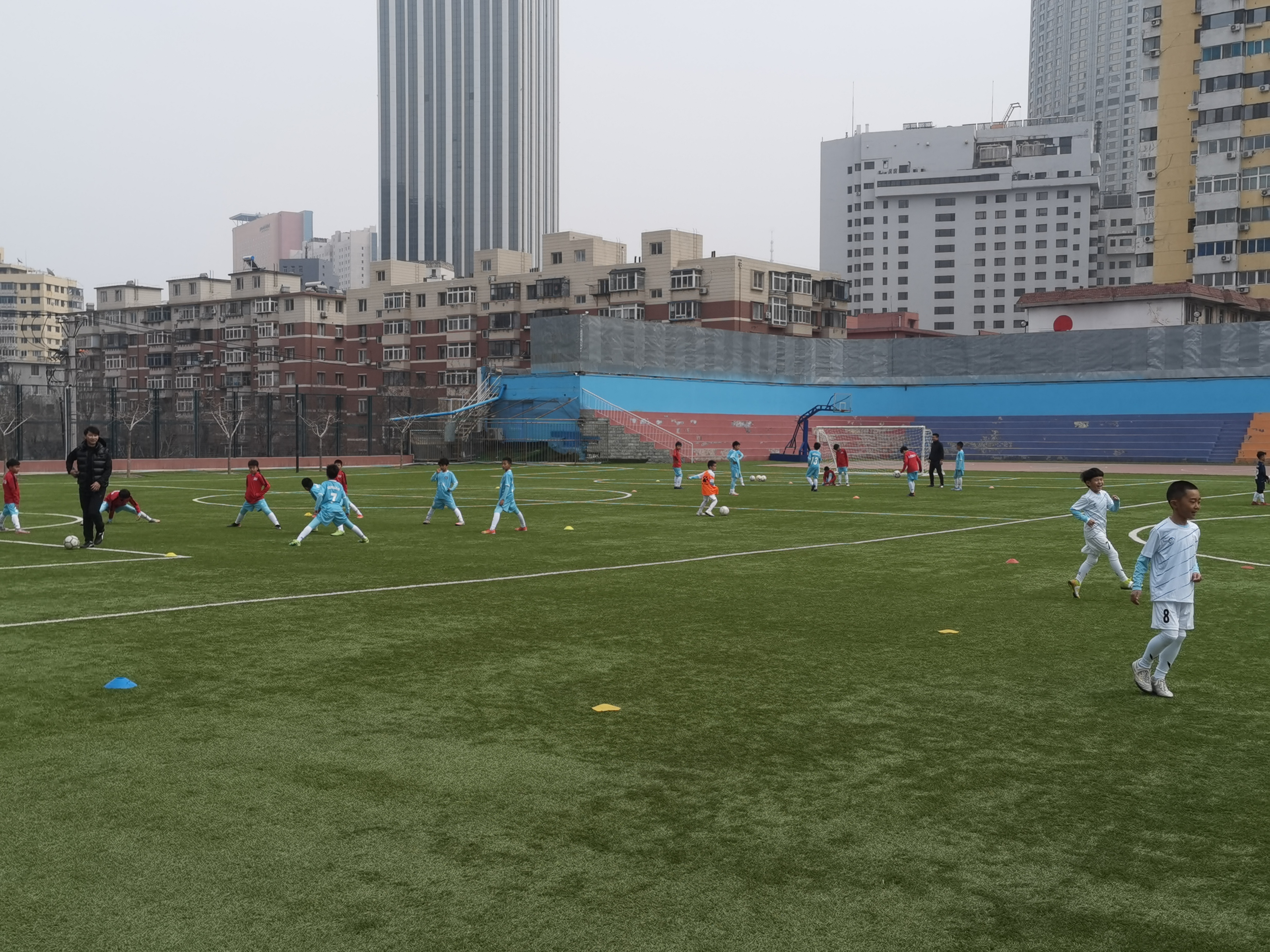 大连市《青训大纲》试点学校的校园足球队员在训练