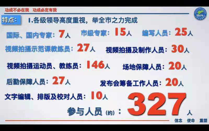 据了解,《大连青训大纲》共77个主题,每个主题都由训练、比赛以及指导要点等部分组成。多名大连籍的知名球员、青训教练和学校教师参与了教学视频拍摄,充分体现大连特色。目前的《大连青训大纲》主要面对U12及以下年龄组的少年儿童,大连市在未来还会制定初高中阶段的足球训练标准,将大纲进一步完善。