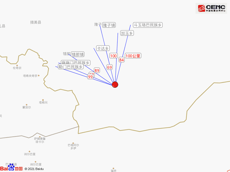 附近乡镇。本次地震周边20公里内无村庄分布,50公里内无乡镇驻地分布,100公里内的乡镇有卡达乡、加玉乡、错那镇、麻麻门巴民族乡、勒门巴民族乡。