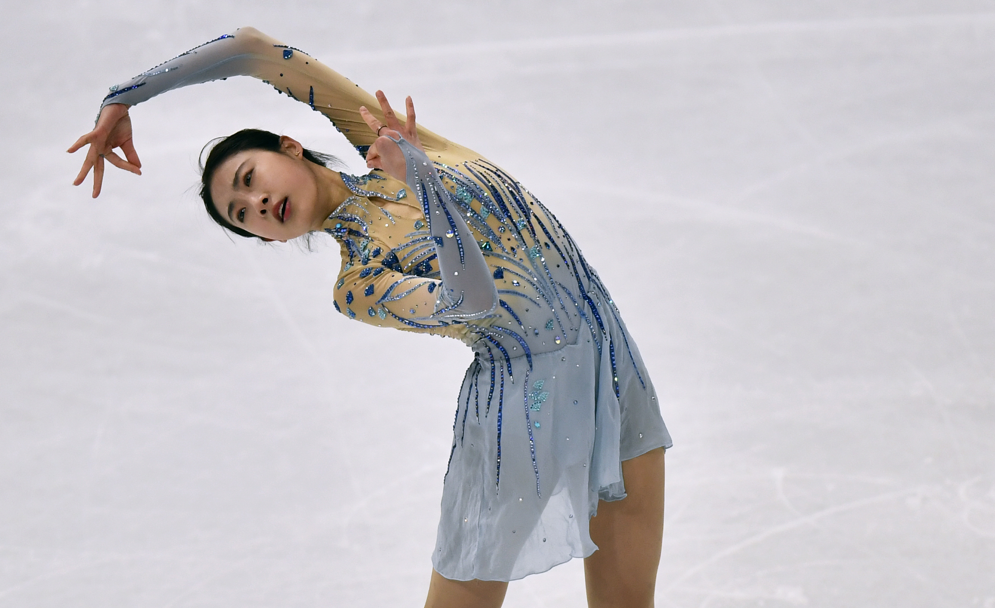 3月26日,陈虹伊在女子单人滑自由滑比赛中。