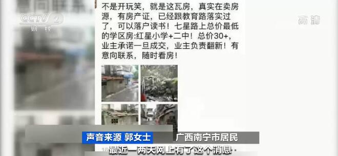 央视网消息:人们追捧学区房到什么程度呢?天价能接受,房型奇葩也没问题。在南宁,就有一处面积只有13.51平方米,售价30万的“学区房”,引爆了很多人的朋友圈。这个房源自带的信息量很大,“瓦房”“有房产证”“七星路上总价最低的学区房”等等。
