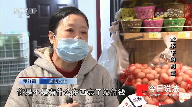 事发当天,这名老人进入超市后,挑选了几个鸡蛋放进了购物袋,又随手拿了两颗鸡蛋放进了自己的裤子口袋。超市工作人员发现老人的裤兜鼓鼓囊囊,便上前进行阻拦想要检查一下。但老人不肯配合,超市工作人员就用手指捏住了老人衣服的袖子,防止其离开。