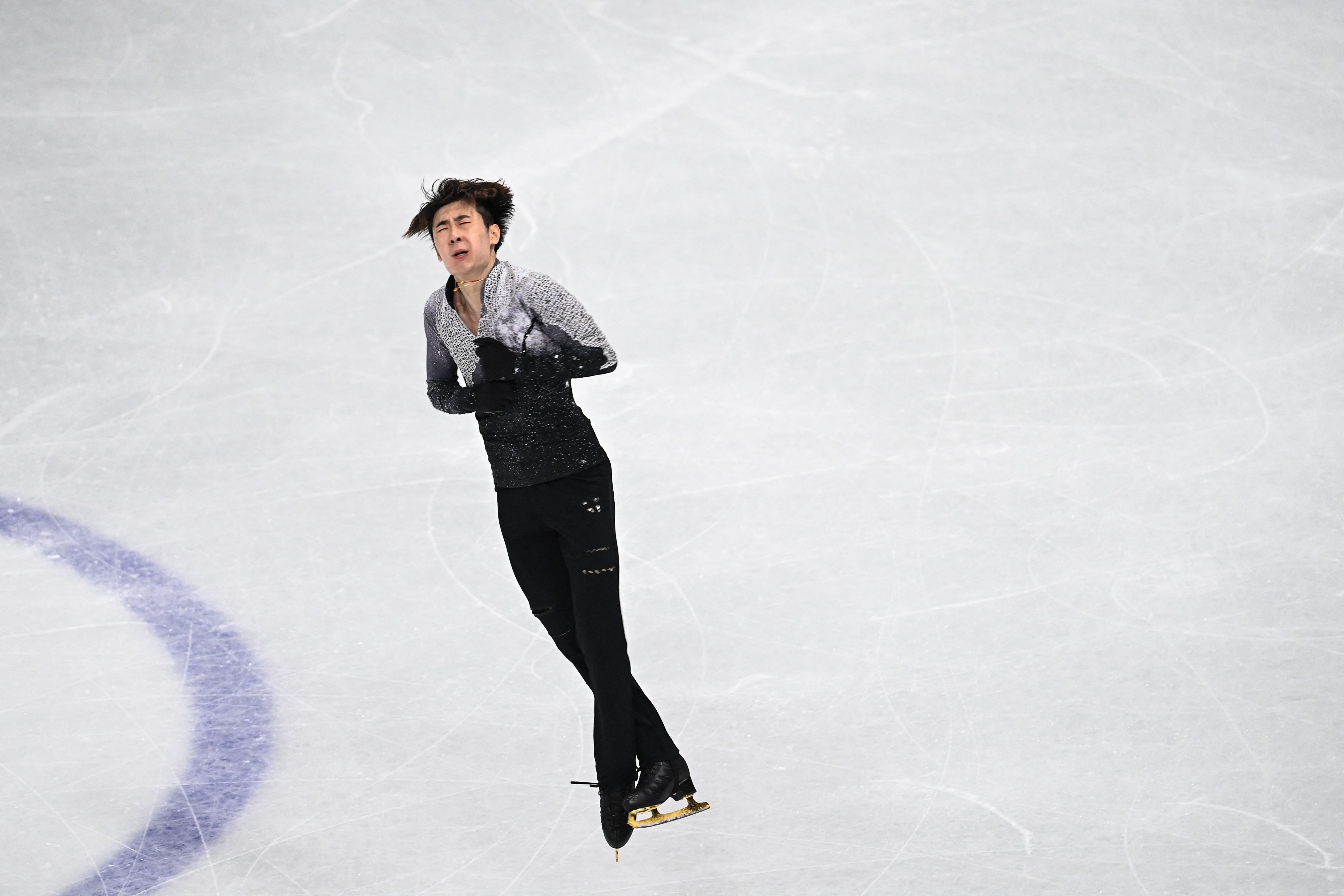 金博洋在男子单人滑自由滑比赛中。新华社/法新