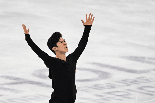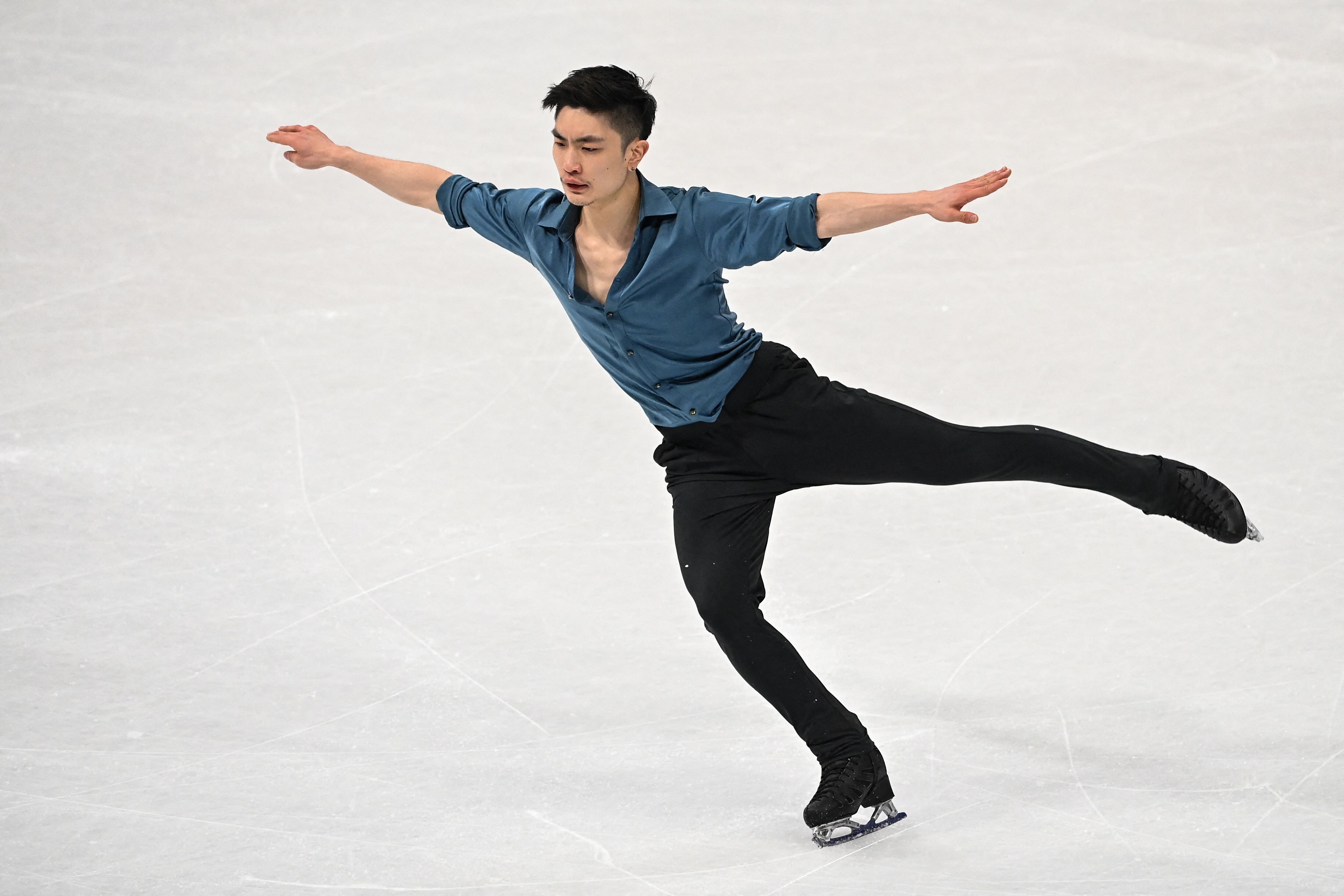 3月27日,陈巍在男子单人滑自由滑比赛中。新华社/法新