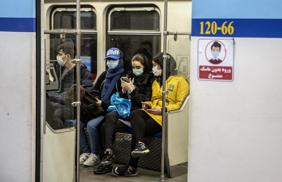 1月30日,人们戴着口罩在伊朗首都德黑兰搭乘地铁。(新华社发,艾哈迈德·哈拉比萨斯摄)