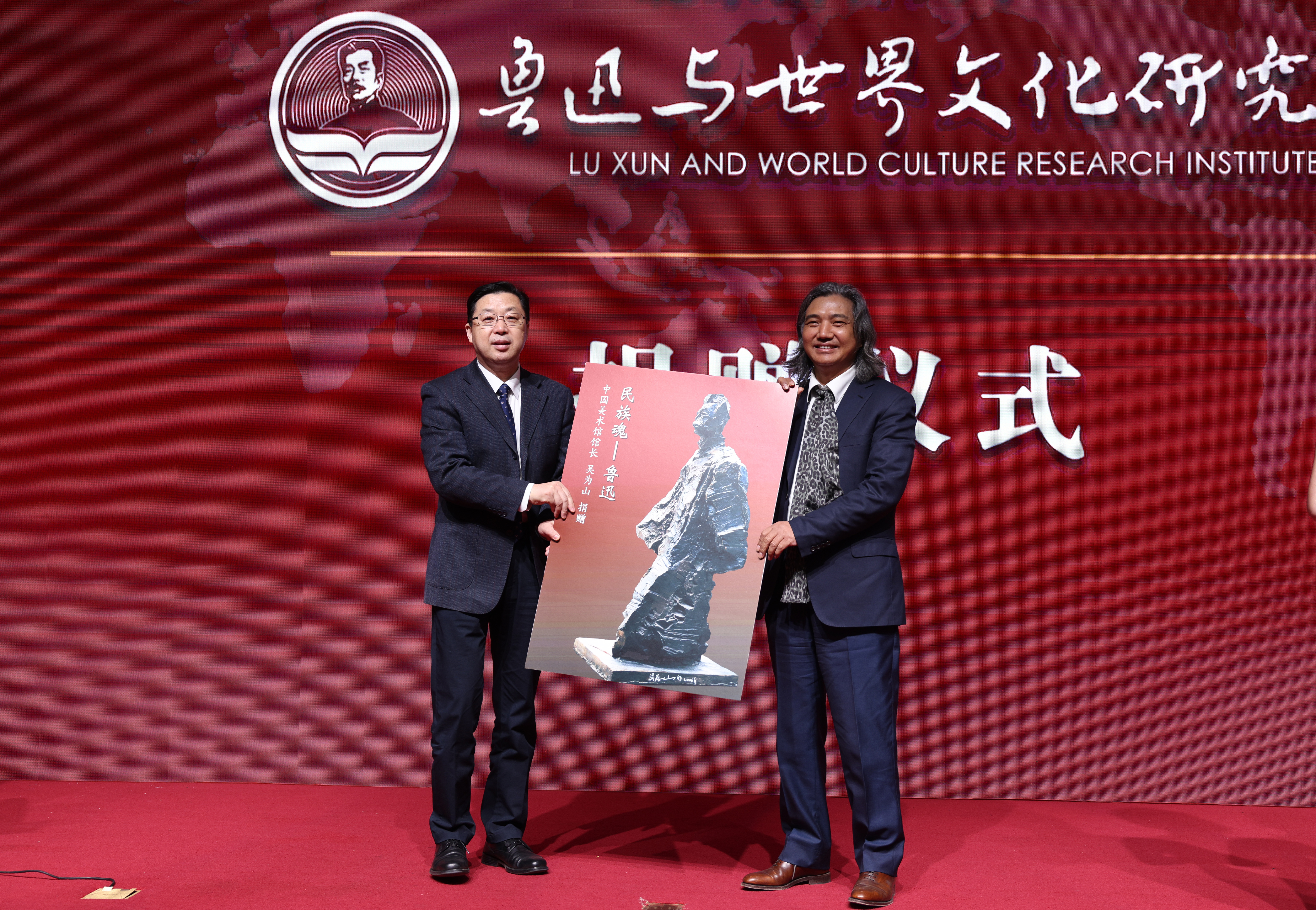 中国美术馆馆长、著名雕塑家吴为山日前向北京语言大学捐赠名为《民族魂——鲁迅》的铸铜雕像。这是一尊真人等高的铸铜全身立像。