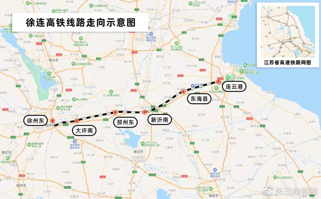 作为连云港至乌鲁木齐陆桥通道的最东段,也是最后通车段,徐连高铁于2月8日开通,在运营初期开行徐州东至连云港段本线动车组列车7对。徐连高铁建成通车,结束了沿线邳州、新沂、东海县三地不通高铁的历史,同时惠及邻近的沭阳、临沭、郯城等苏北鲁南地区旅客出行。
