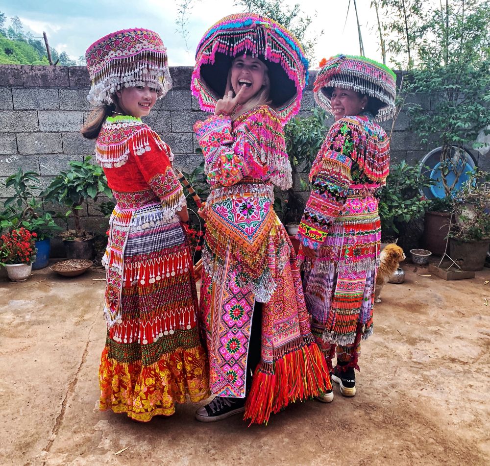 2019年4月8日,艾米在中国云南与当地苗族居民合影。受访者供图