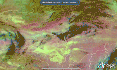 FY-4A气象卫星沙尘监测动画(粉色为沙尘)粉色区域展示了沙尘自西北向东南方向的移