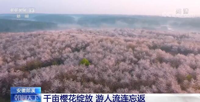 连日来,位于安徽郎溪十字铺镇新和村的上千亩樱花竞相绽放。穿行在樱花林间,花朵摇曳生姿,一阵春风袭来,簌簌樱花如雨落下。从高空俯瞰,樱林又如云似雪,和万亩绿茶相映成趣,景色蔚为壮观。