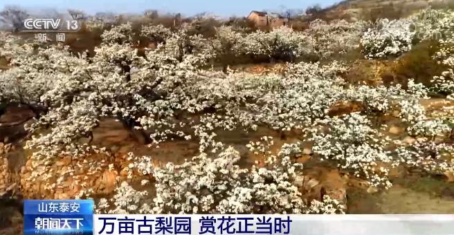 在山东泰安夏张镇万亩古梨园,这几日园中的梨花迎来盛花期,远远望去,山坡犹如披上一袭白装。走进园中,盛开的梨花绽满枝头,这里的古梨树树龄多在二、三百年之间,是全国规模较大的山地古梨园。蜿蜒的山脉花团锦簇,蜜蜂和蝴蝶在花丛中翩翩起舞,景色美不胜收。