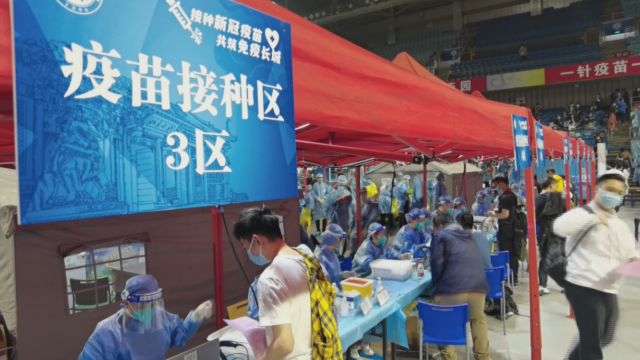 记者在北京大学邱德拔体育馆看到,接种工作井然有序,北大师生们正分时段、分批次进行疫苗接种。现场设置了测温区、知情同意书签订及健康问询区、信息登记区、疫苗接种区、留置观察及应急处置区、物资储存冷链区6个区域。