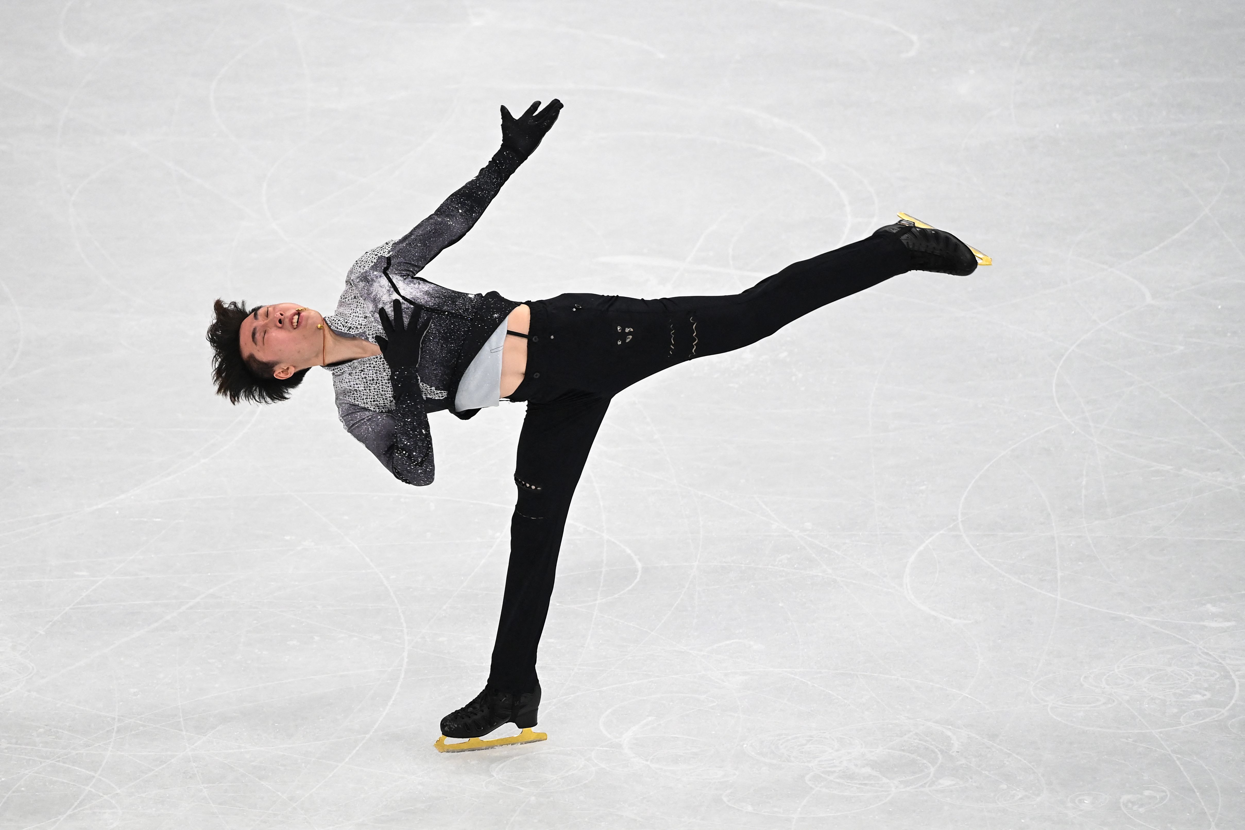 图为3月27日,金博洋在男子单人滑自由滑比赛中。新华社/法新