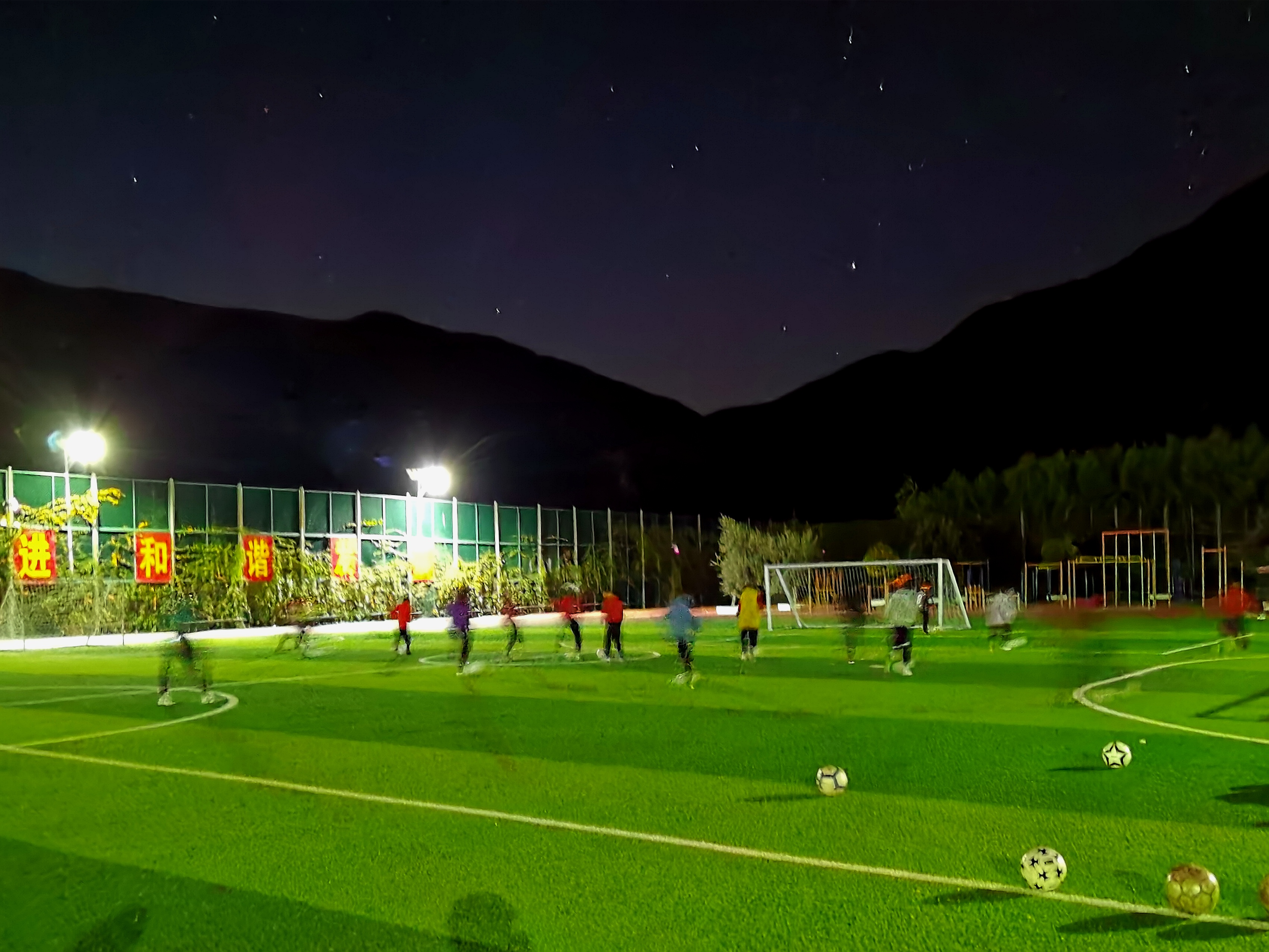 图为孩子们在星空下晨练。