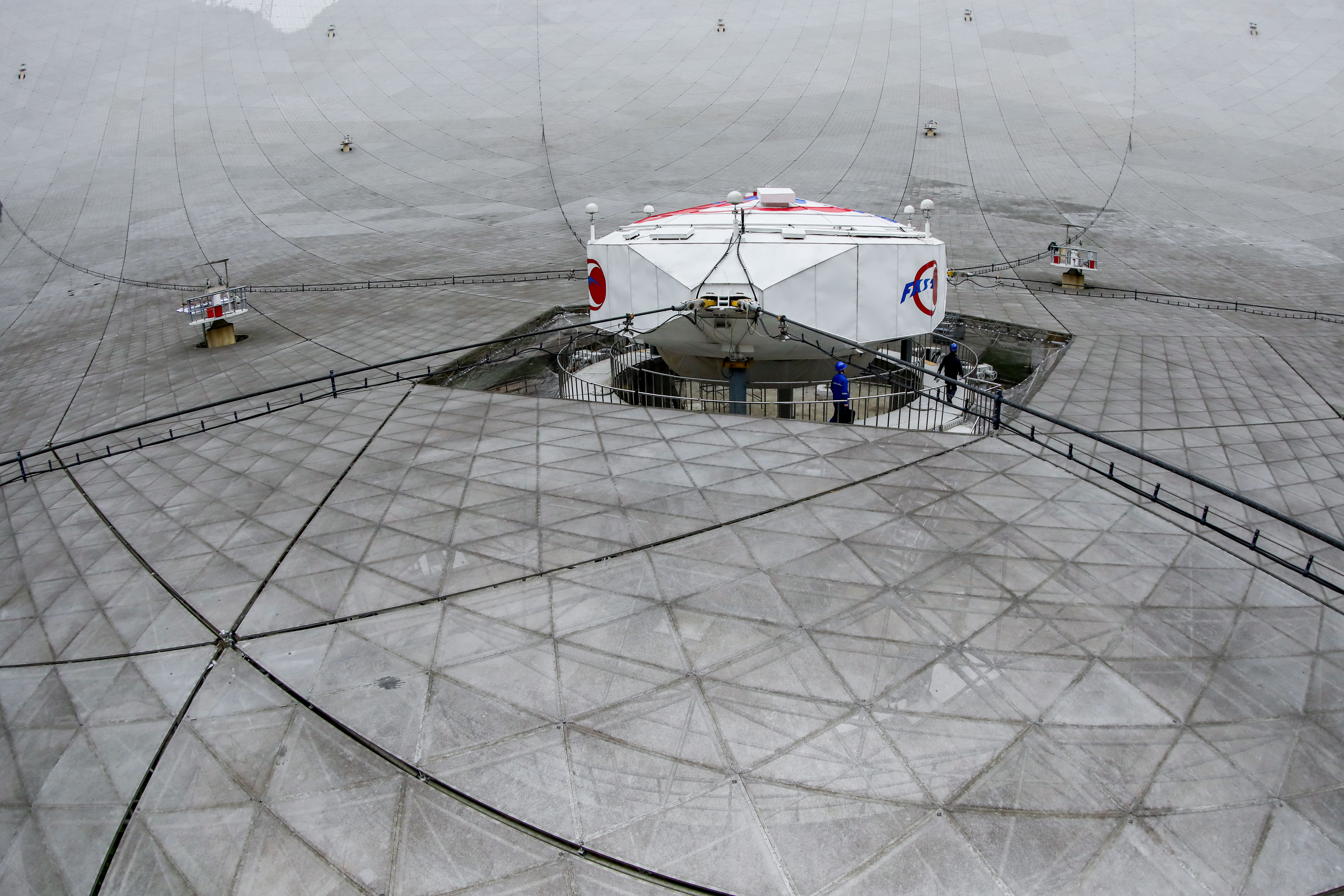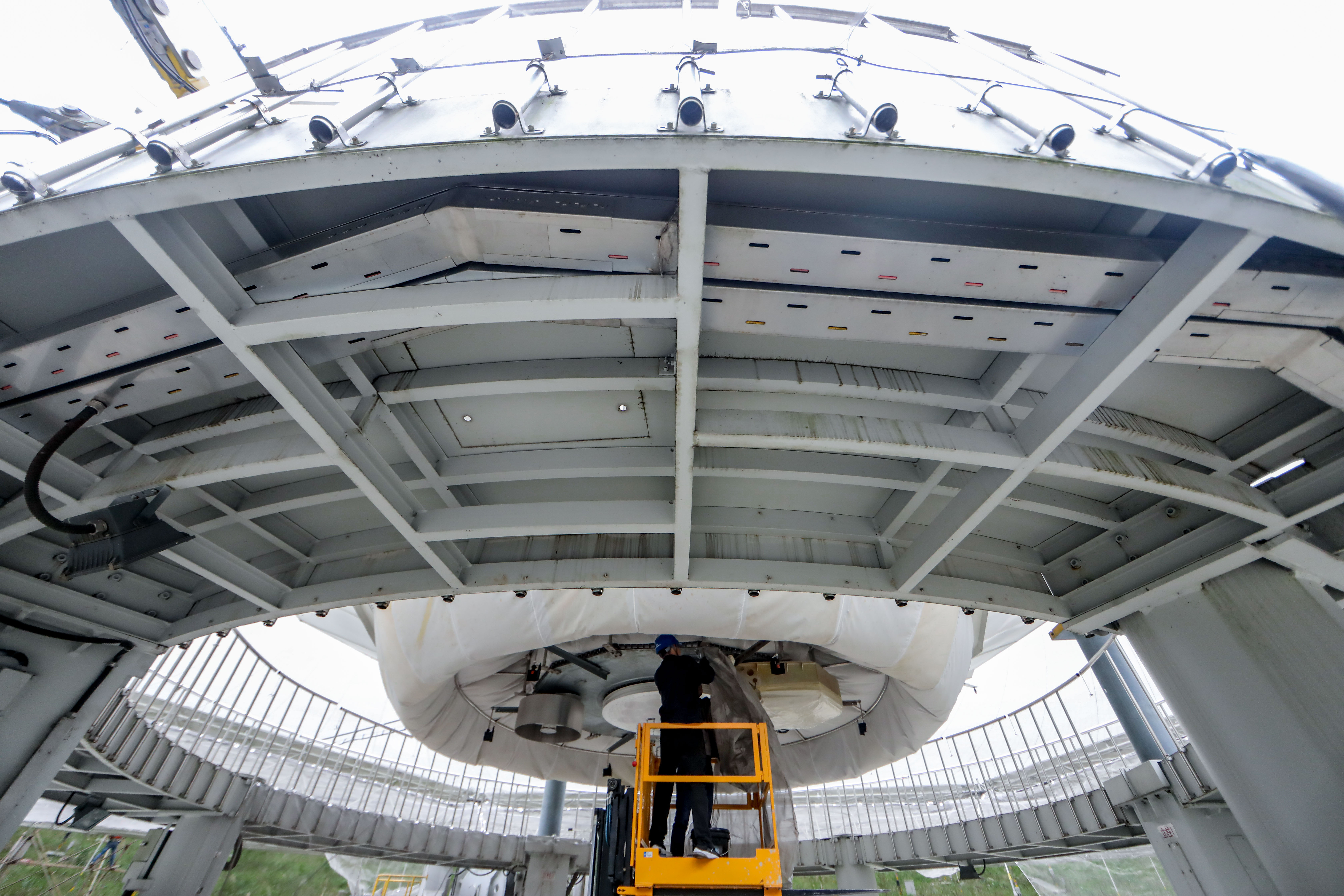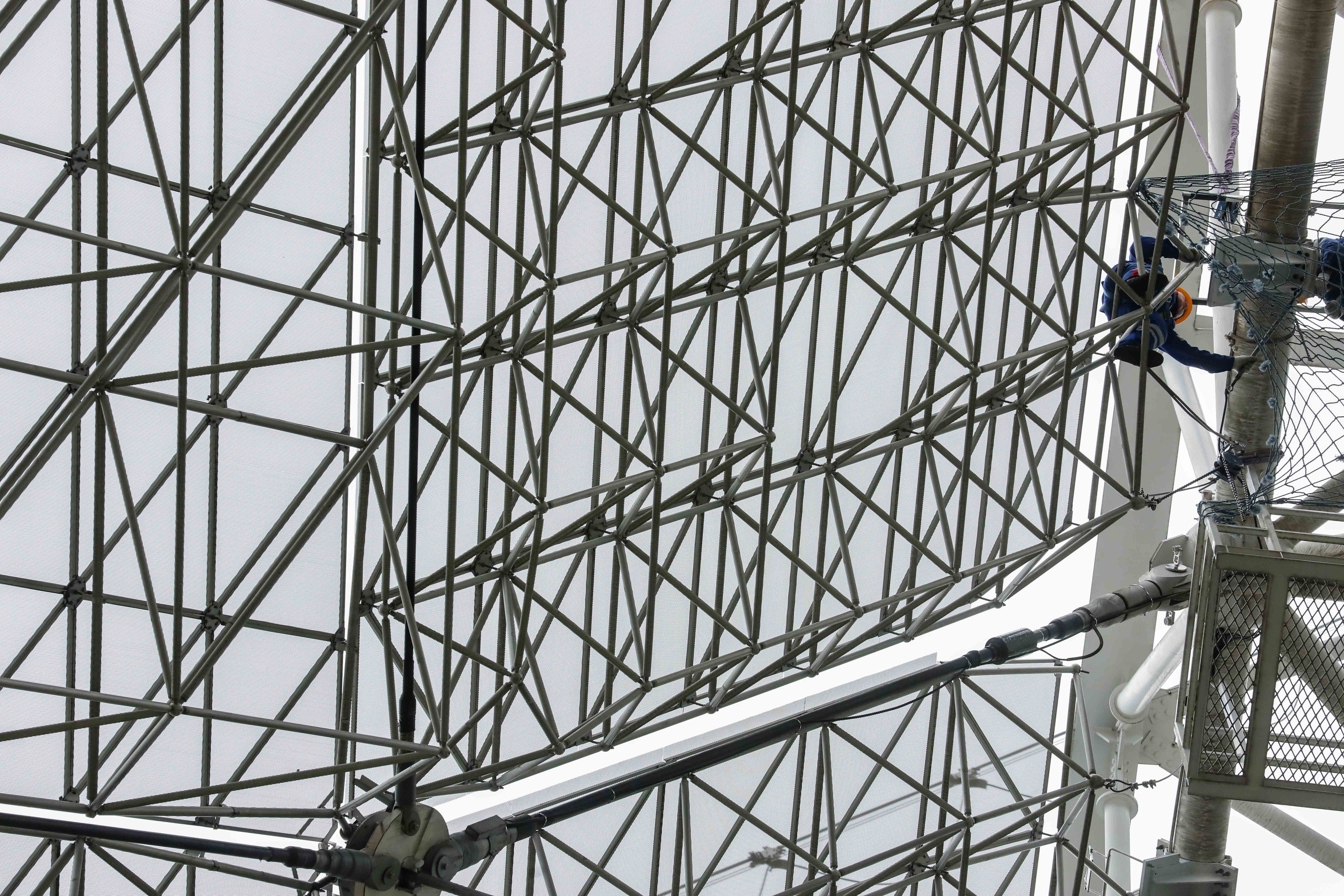 ↑3月28日,工作人员对FAST馈源舱进行常规维护。