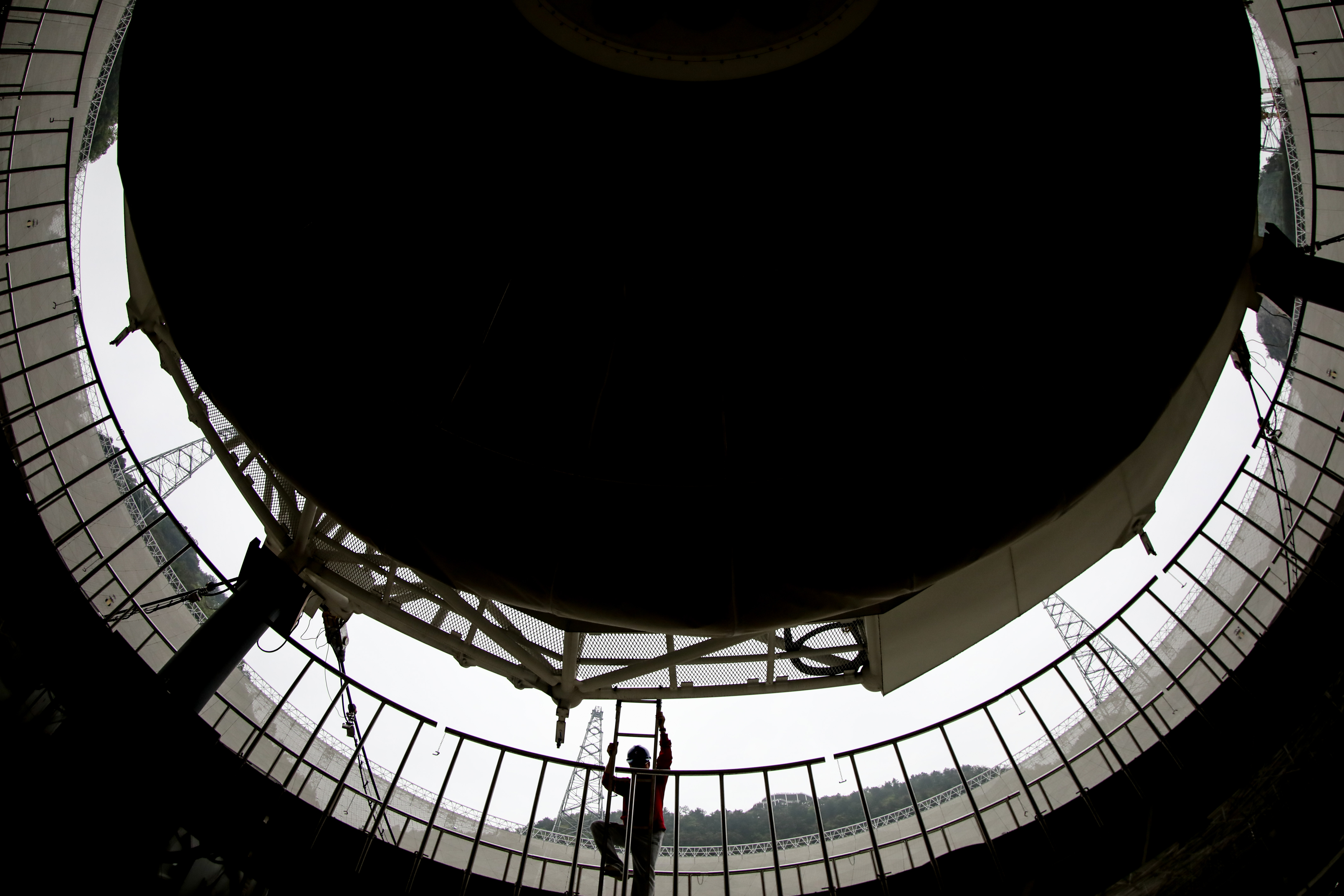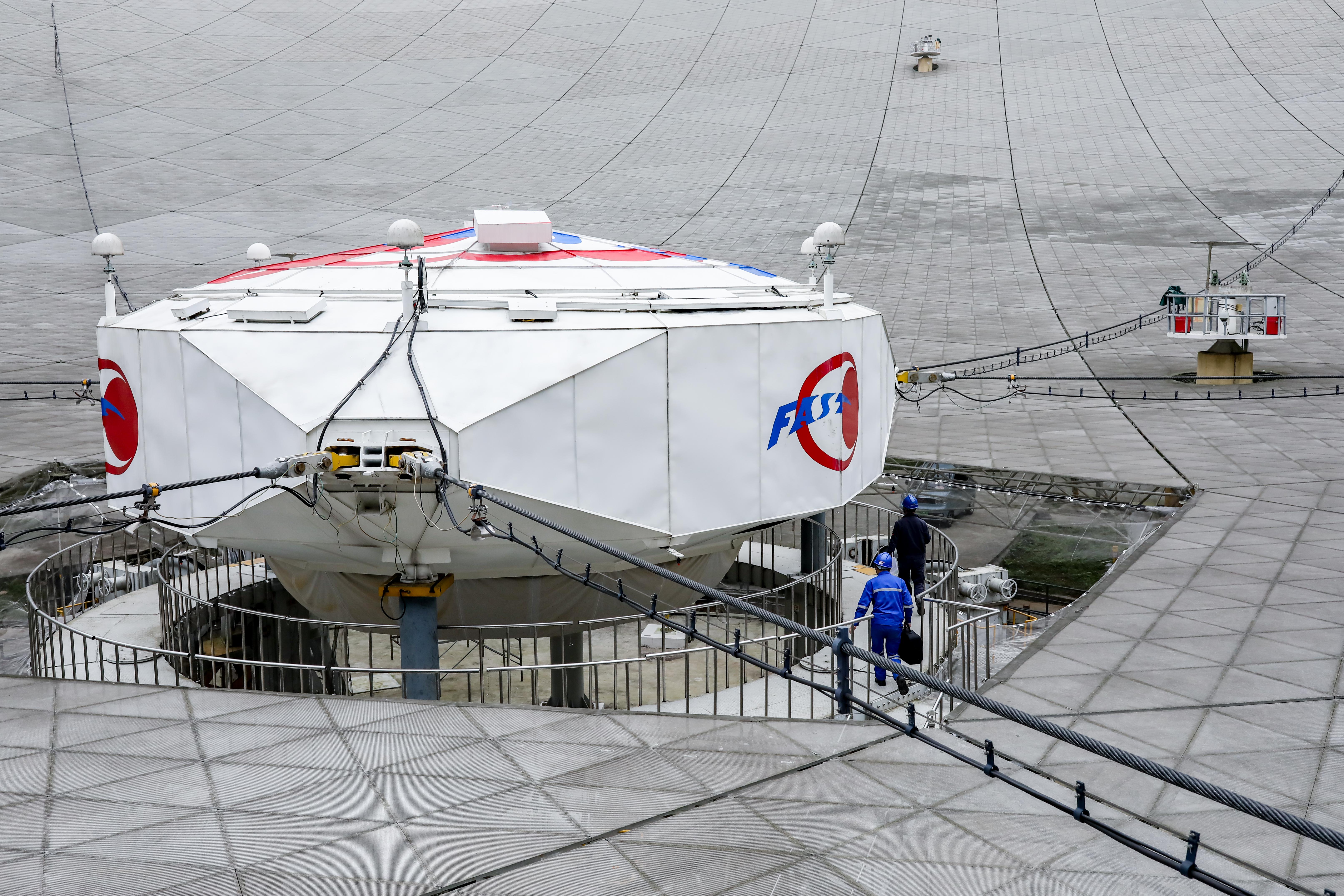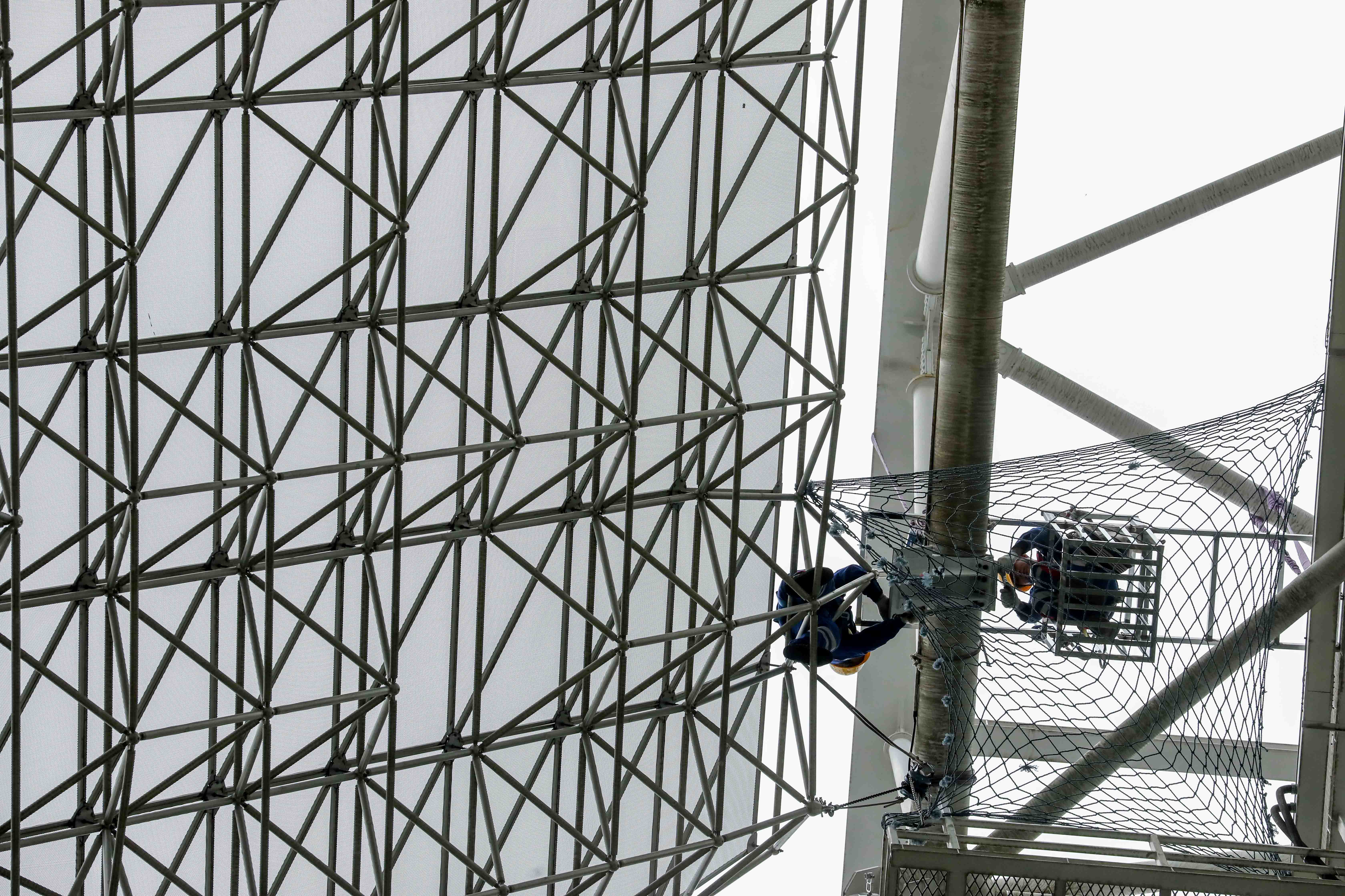 ↑3月28日,工作人员对FAST馈源舱进行常规维护。