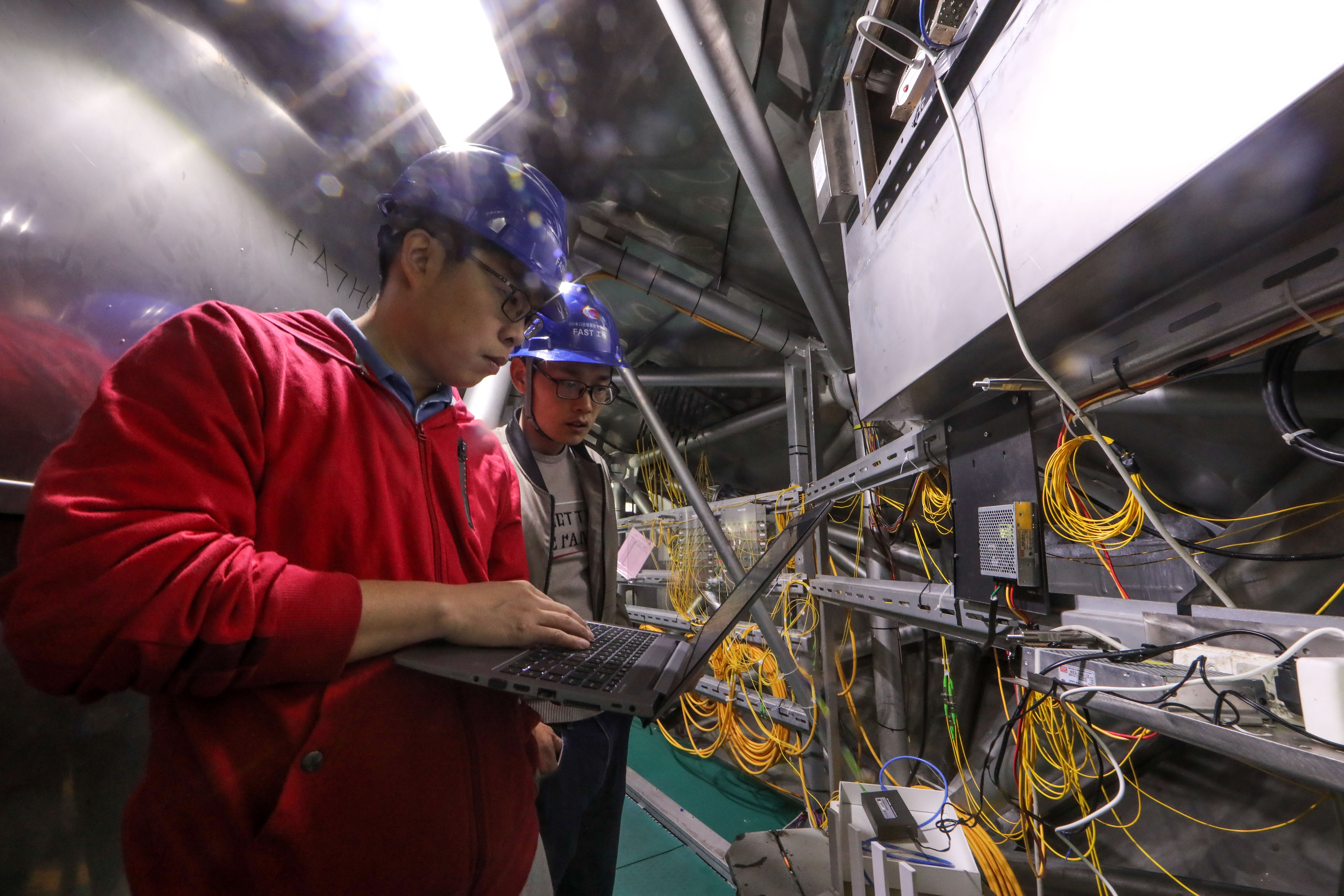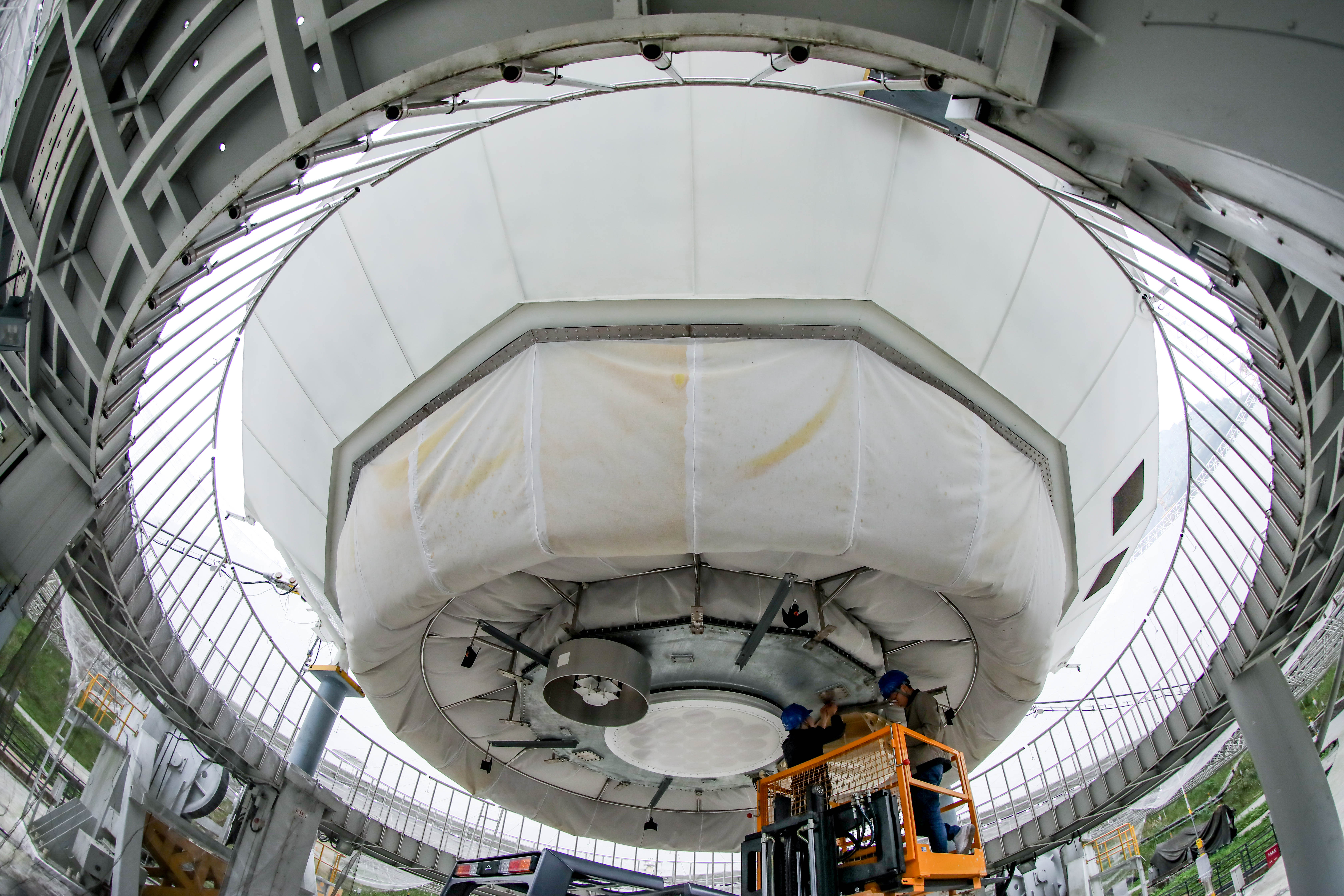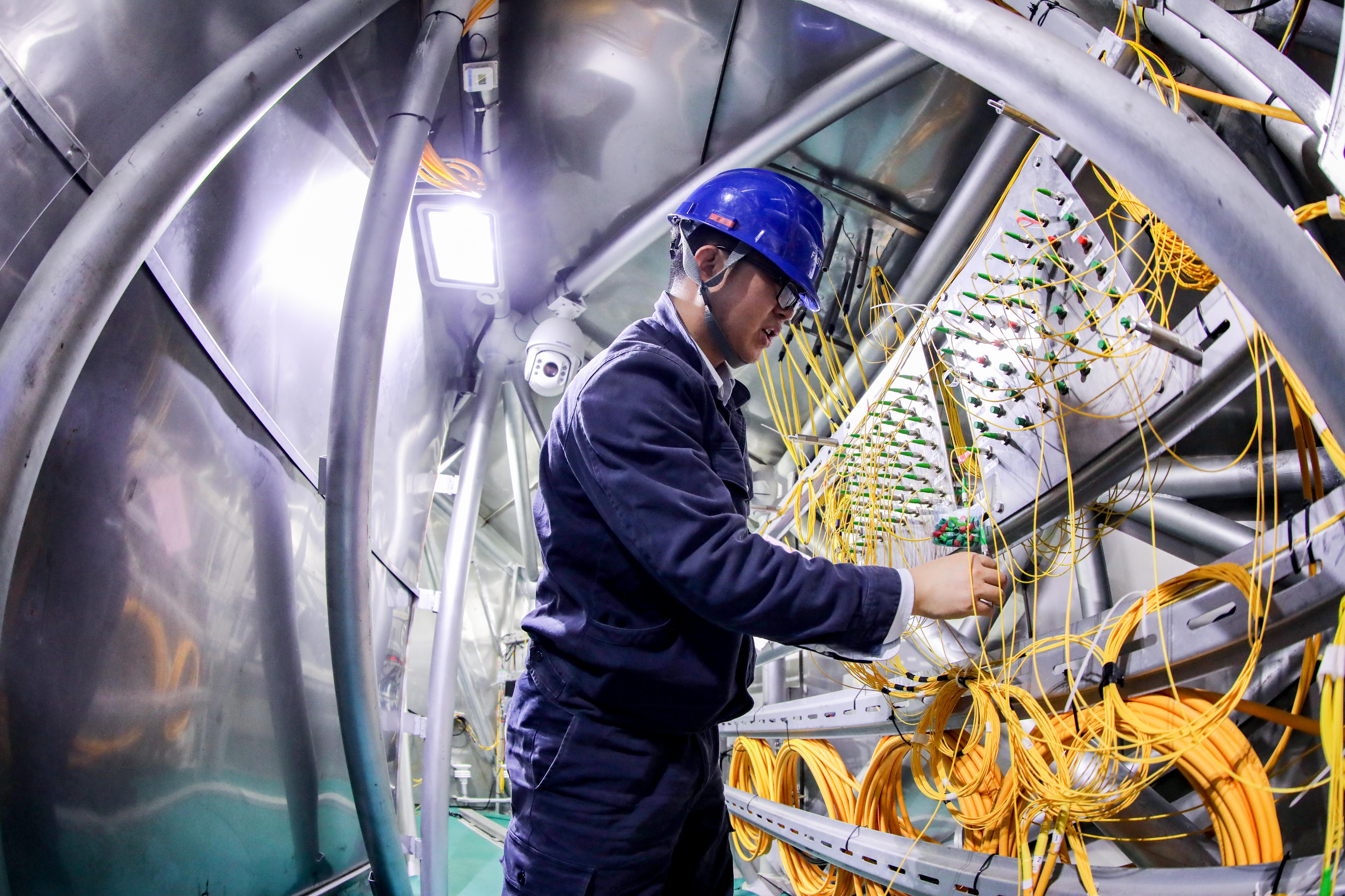 ↑3月28日,工作人员进入FAST馈源舱(鱼眼镜头拍摄)。