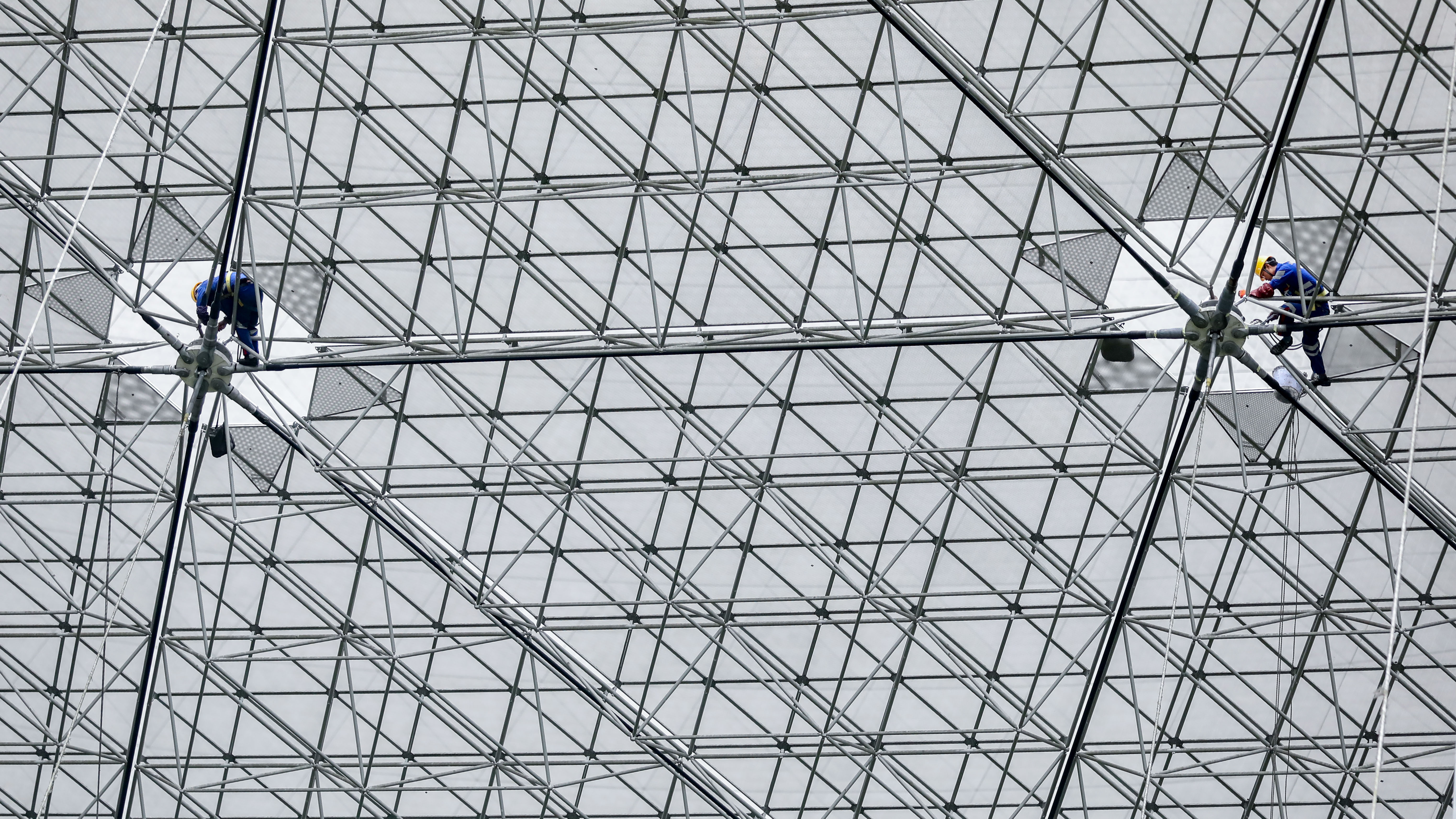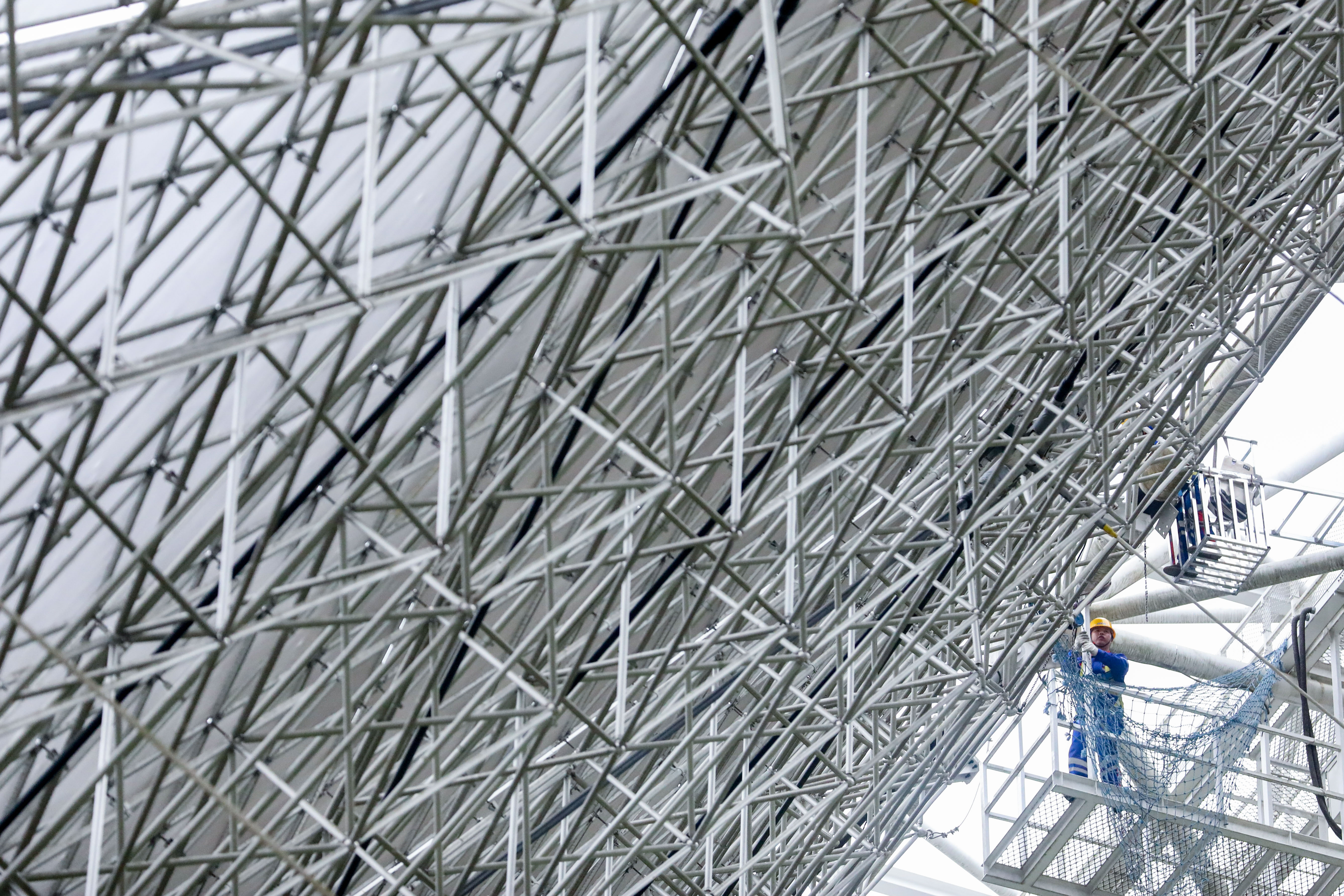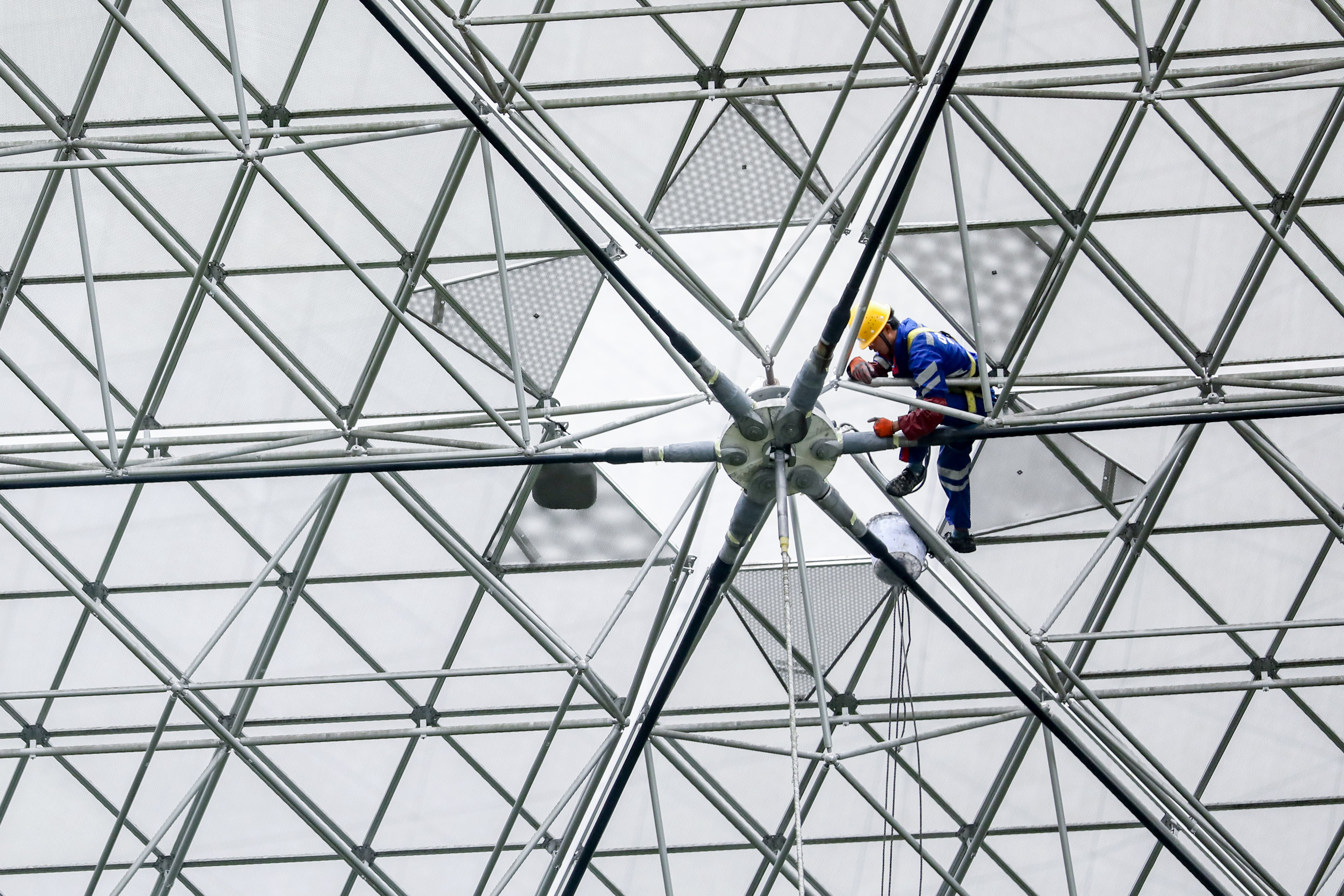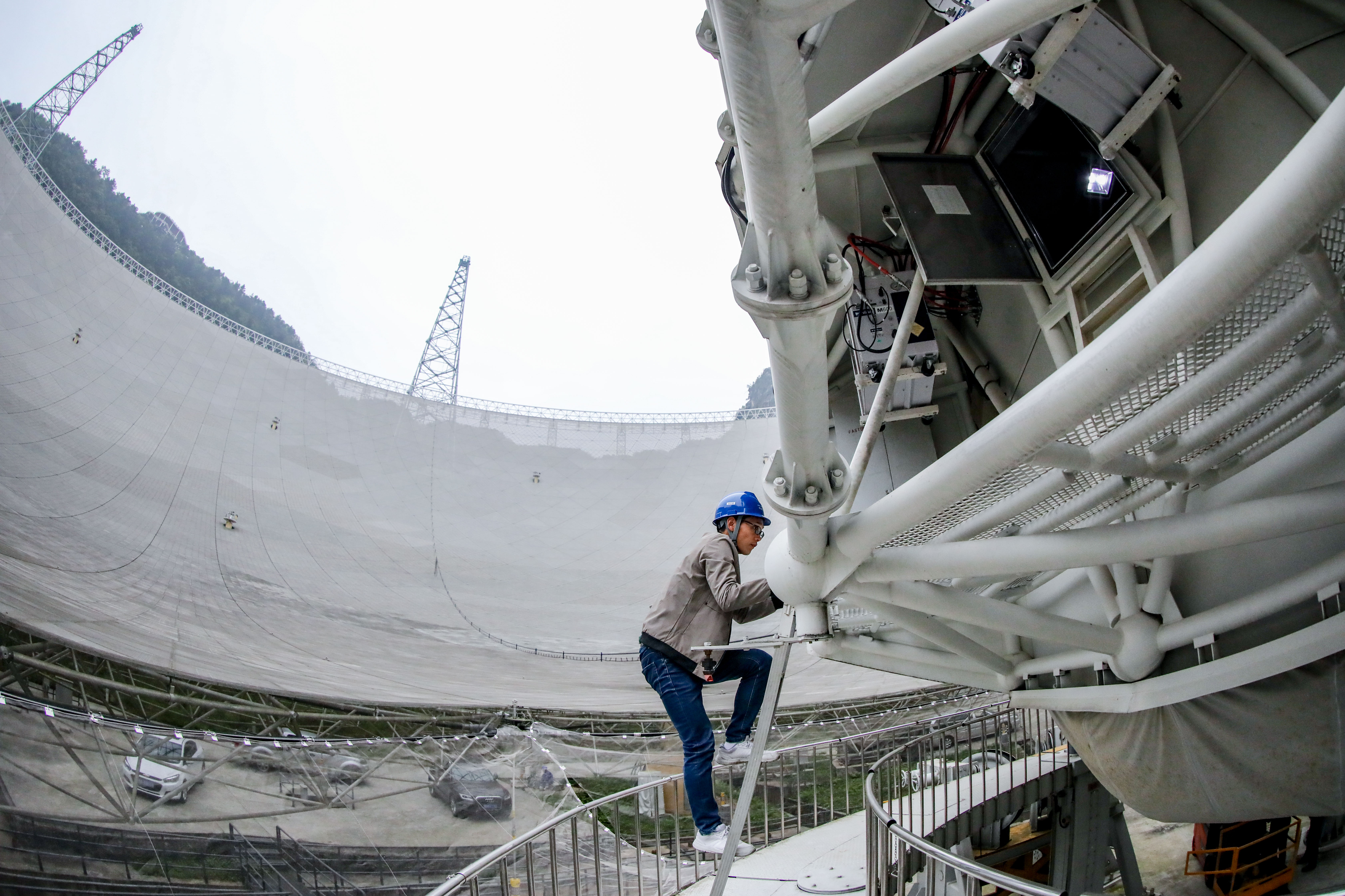 ↑3月28日,工作人员对FAST反射面板进行常规维护。
