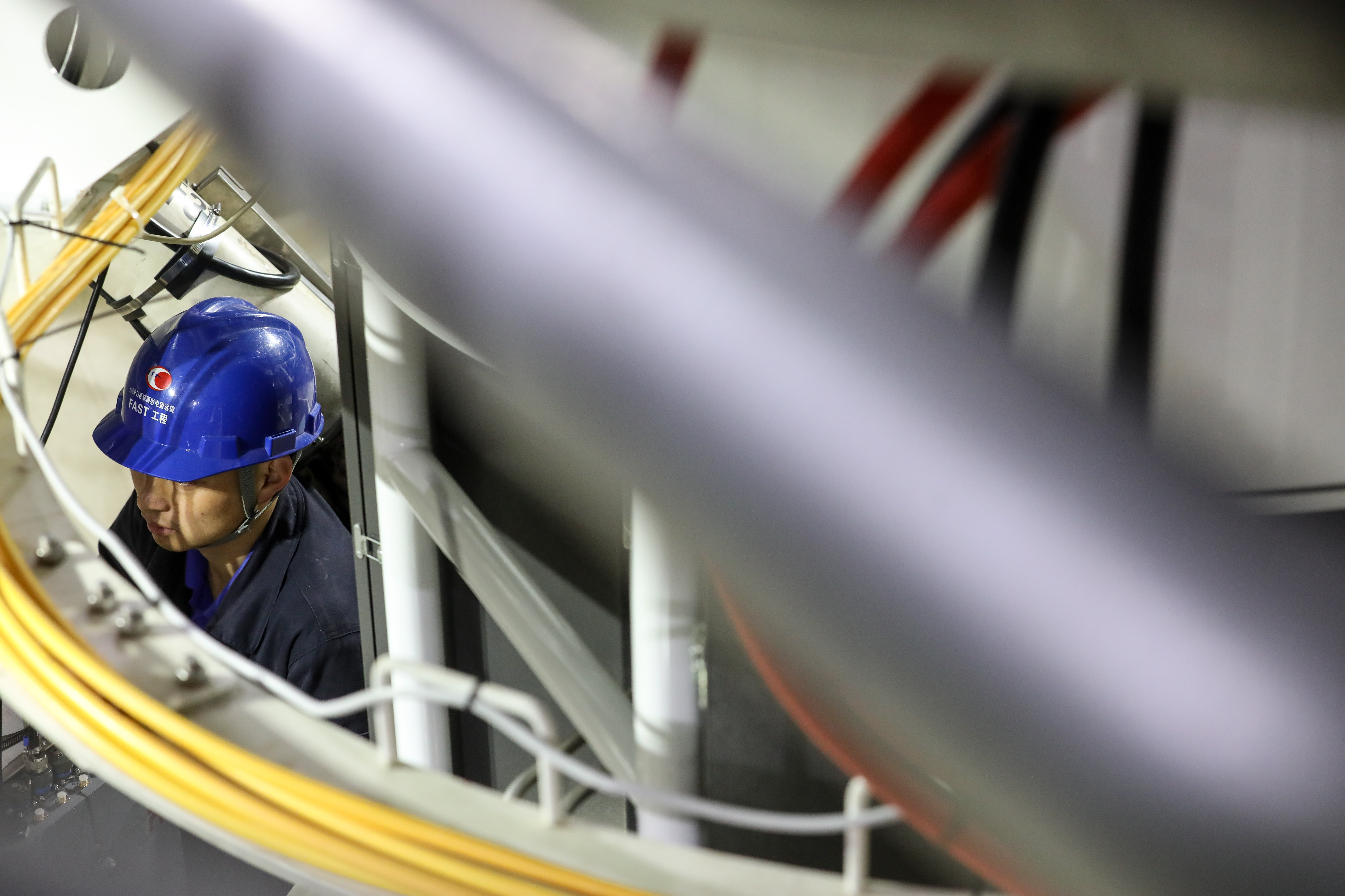 ↑3月28日,工作人员对FAST促动器进行常规维护。