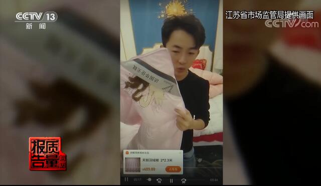 南京质检院江苏省户外中心高级工程师 阎燕:直播平台抽检的样品有4批次是三无产品,都没有标注厂名厂址,还有的没有标注绒子含量,还有的所使用的标准不是羽绒被的标准,这些样品不符合我们监督抽查的要求,只能退货。