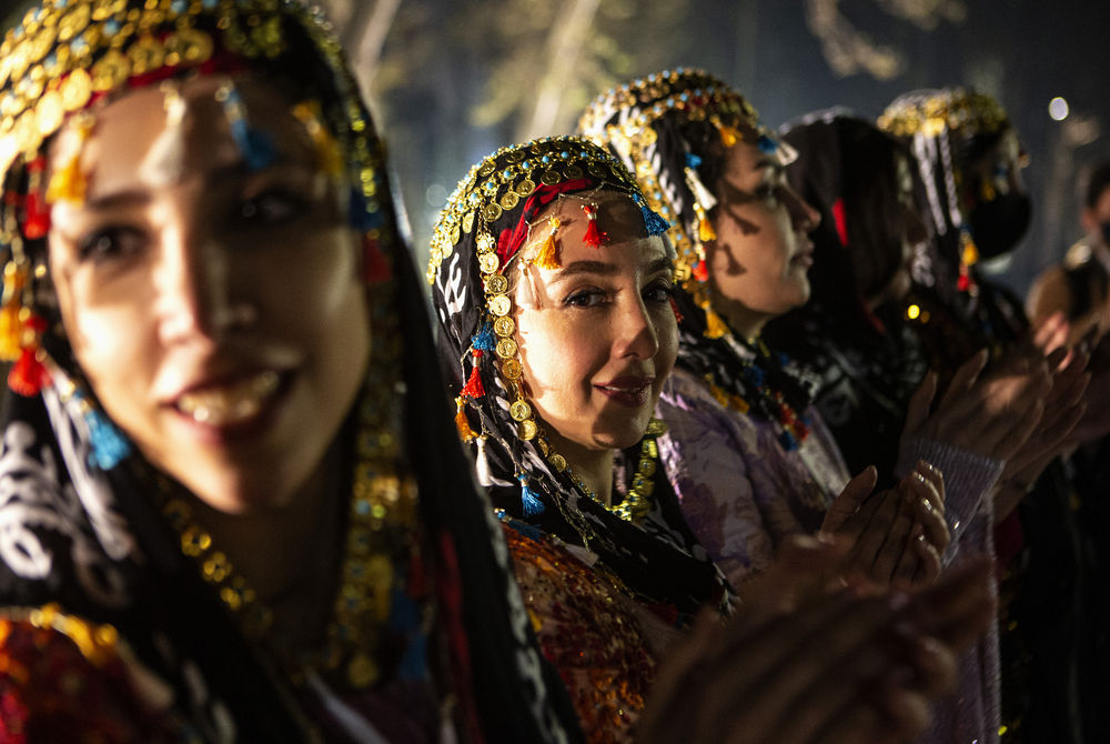 3月15日晚,伊朗民众身着传统民族服装在首都德黑兰参加诺鲁孜节前的庆祝活动。新华社发(艾哈迈德·哈拉比萨斯摄)